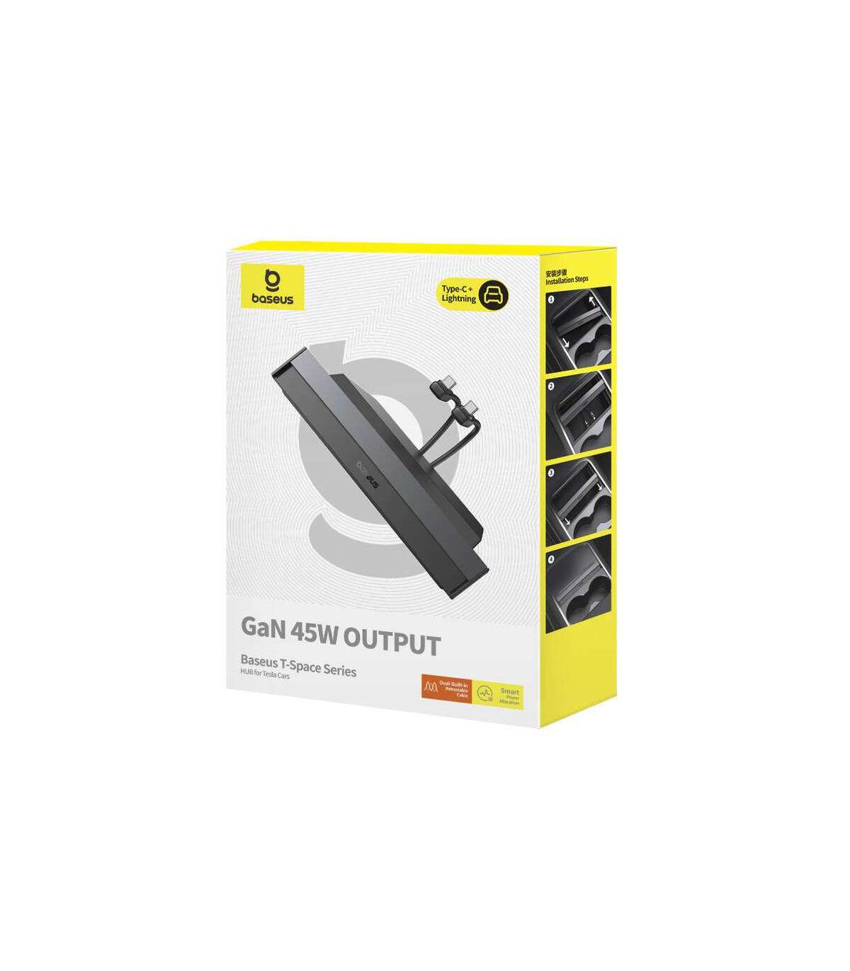 The Baseus Hub is the first device of its kind designed for Tesla to use GaN charging technology. As a result, charging is fast and does not overheat the equipment. The power level of 45 watts allows you to renew the energy of your smartphone, tablet or laptop in a short time. The product also supports various fast charging protocols, including PD3.0, FCP, SCP, QC3.0 and AFC. It also provides protection for devices against overcurrent, short circuit, overheating, etc.
