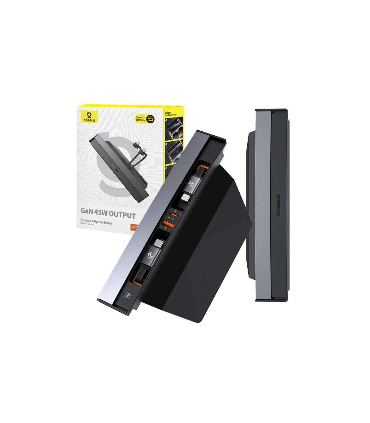 Hub Baseus T-Space with USB-C to USB-C cables for Tesla Cars (black)
