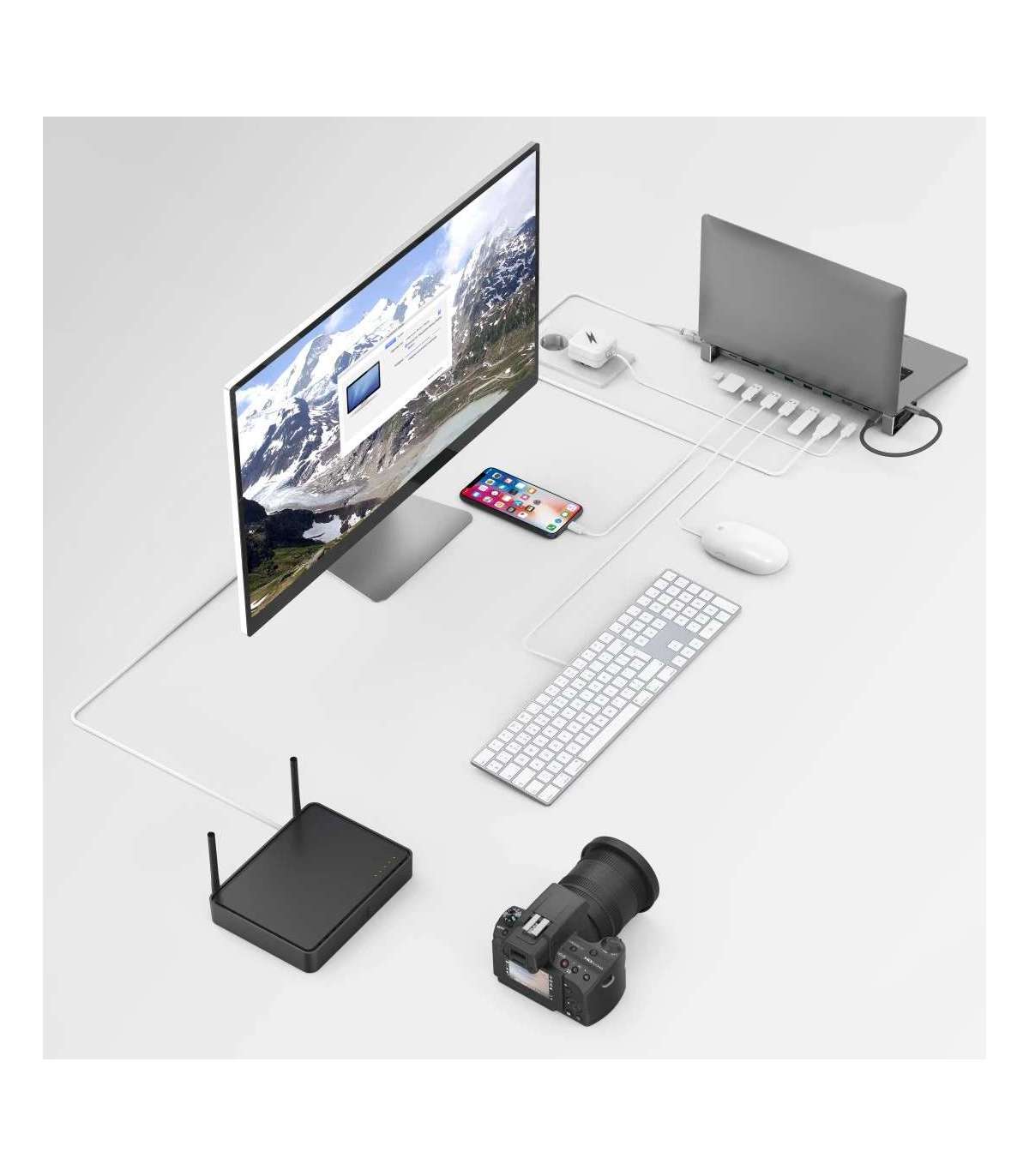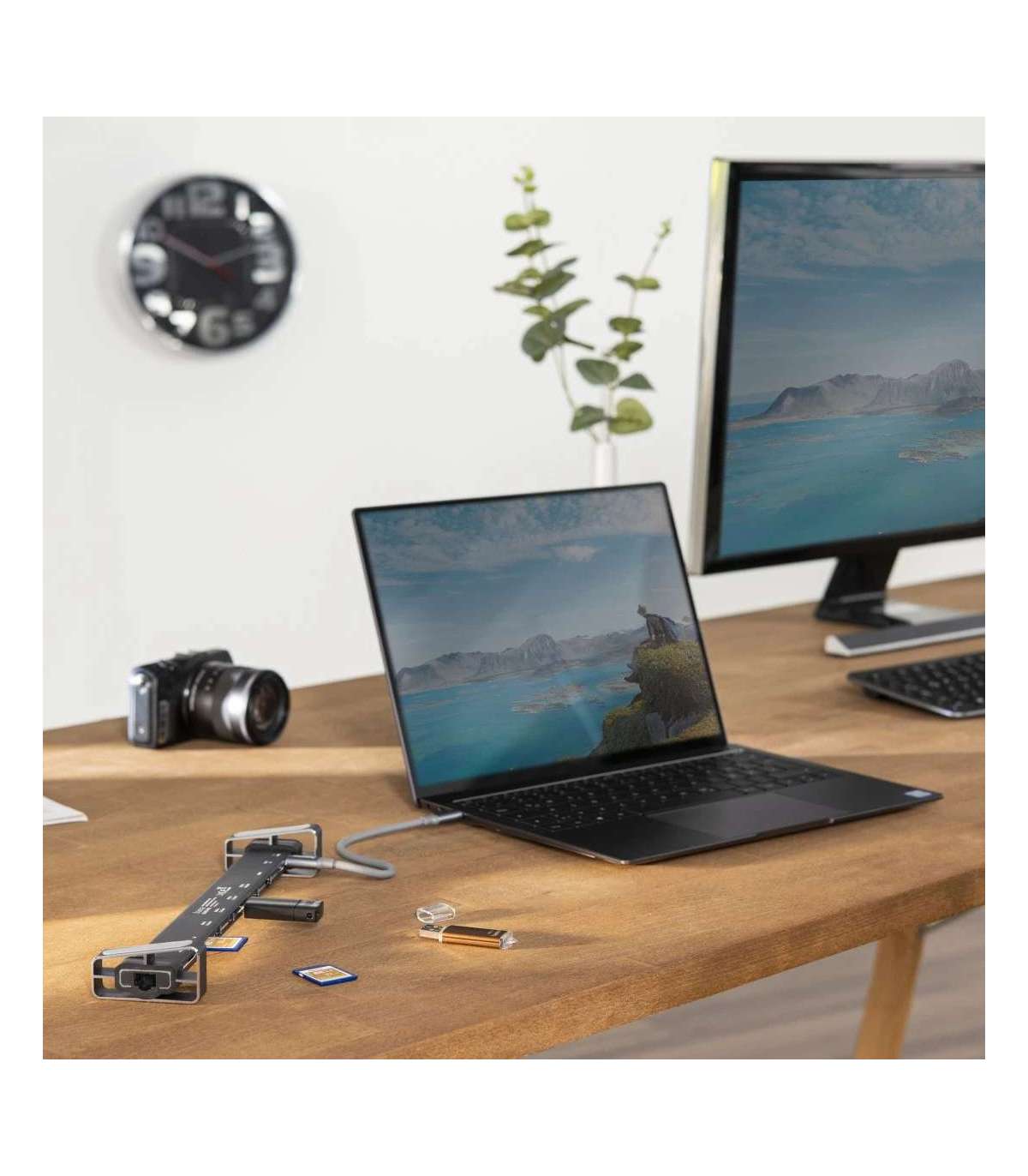 9 pordiga USB-C jaotur, kui arvutis, sülearvutis, MacBookis, tahvelarvutis puuduvad pesad (või neid on vaja laiendada) või kui mitu seadet tuleb ühe konnektori kaudu tsentraalselt ühendada/lahti ühendada