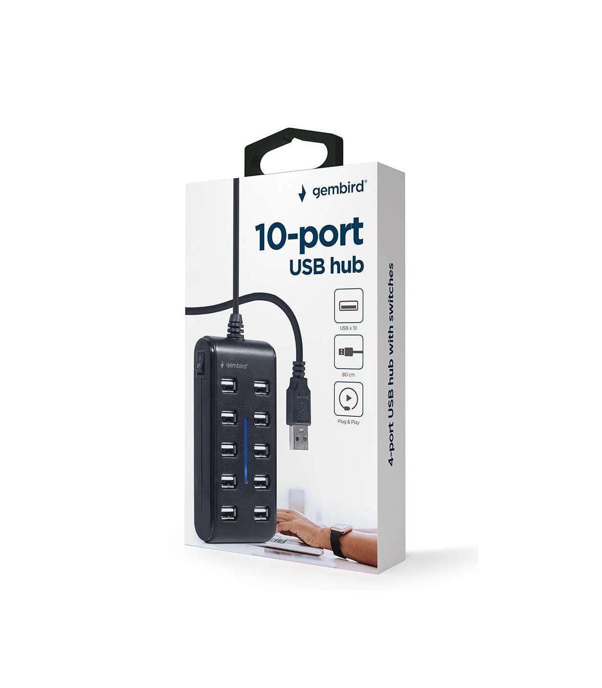 Gembird UHB-U2P10P-01 10-port USB 2.0 hub, black