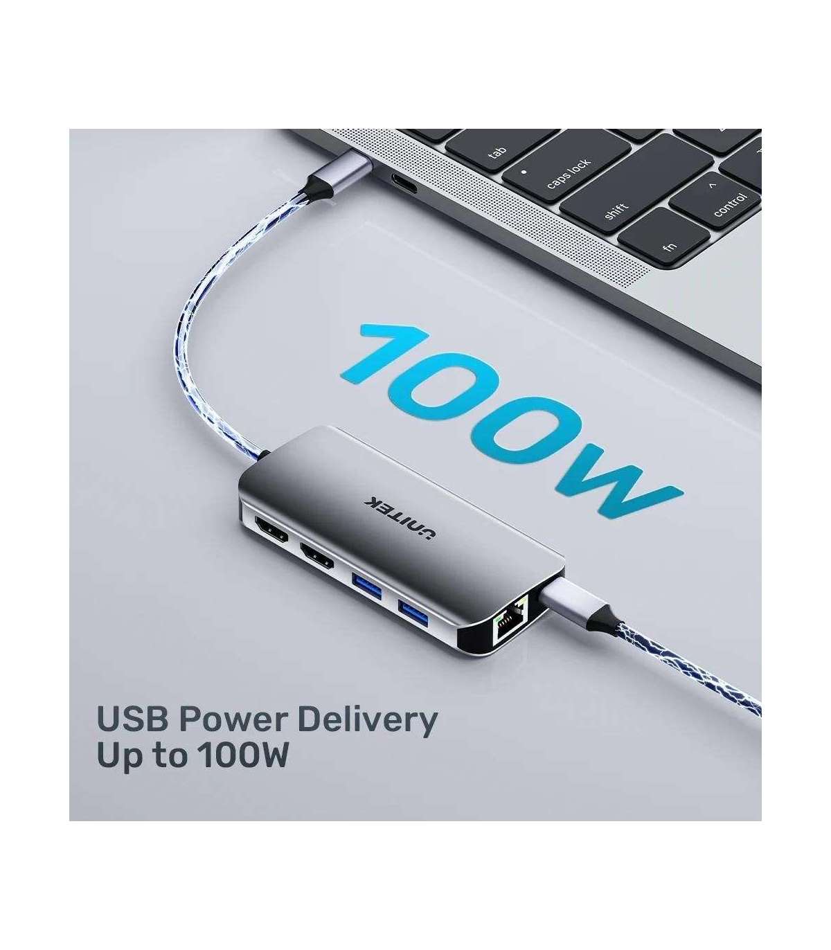 UNITEK ACTIVE HUB USB-C 2X HDMI 4K, RJ45, PD 100W