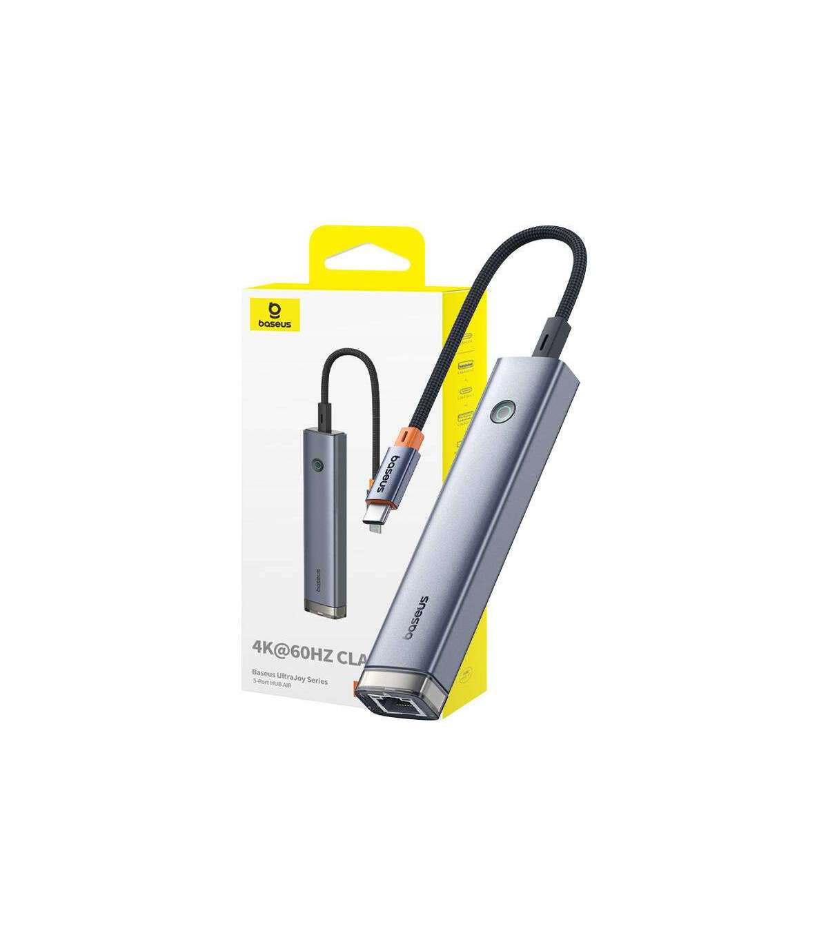The Baseus Ultra Joy BS-OH165 is a 5-in-1 hub that stands out for its versatility and elegance. Made of high-quality 6063 aluminum alloy, this gray hub combines durability with refined design. Designed to meet diverse user needs, the Baseus Ultra Joy offers the most commonly used ports - from USB3.0 to HDMI, PD, and RJ45 - each tailored to modern requirements for fast data transfer and efficient device charging. Additionally, its compact dimensions (123.5 x 26 x 16mm) and lightweight design (62g) make it the perfect travel companion.