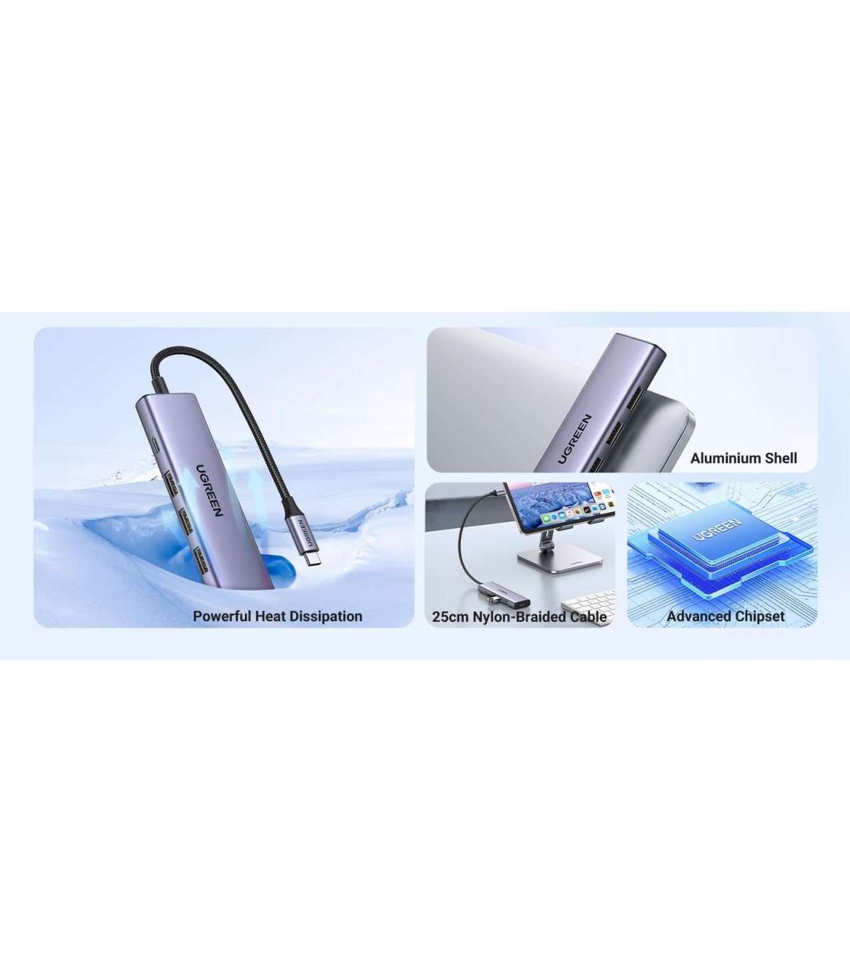 Ugreen 15596 laptop dock/port replicator Wired USB 3.2 Gen 1 (3.1 Gen 1) Type-A + Type-C Aluminium
