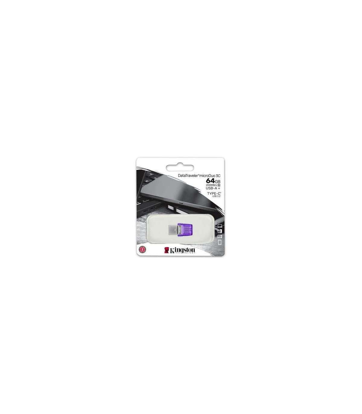 Kingston DTDUO3CG3/64GB DataTraveler microDuo 3C, 64 GB, USB 3.2 Gen 1 Type-C, 200 MB/s, Purple