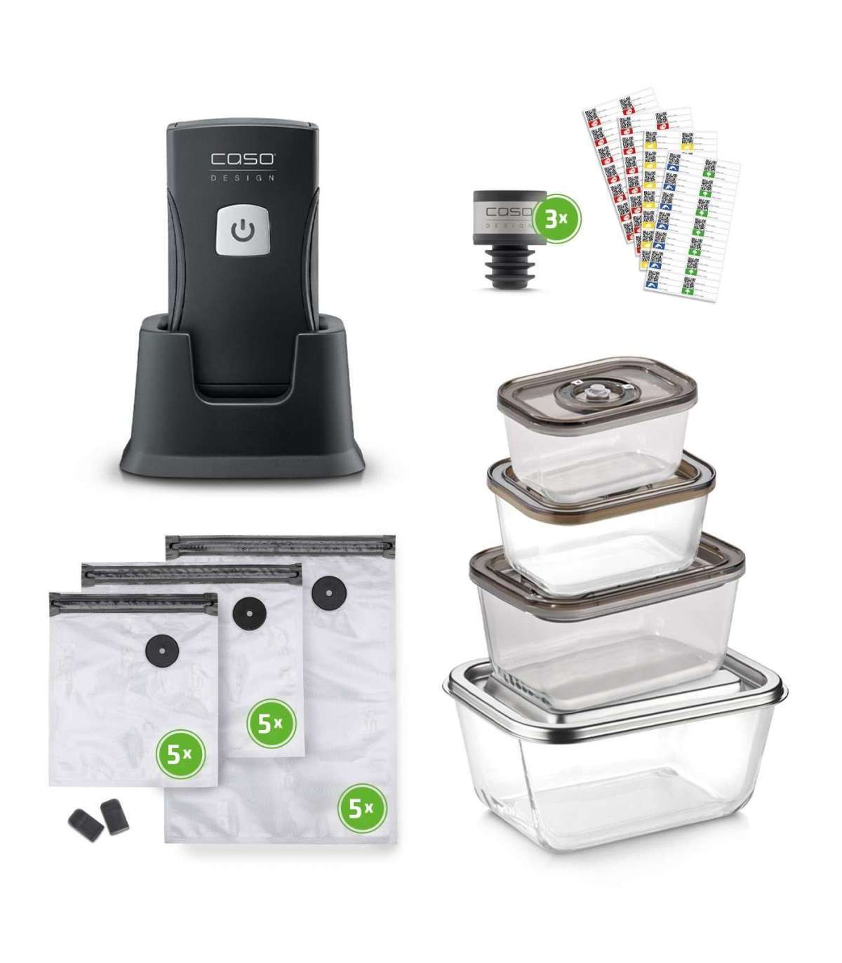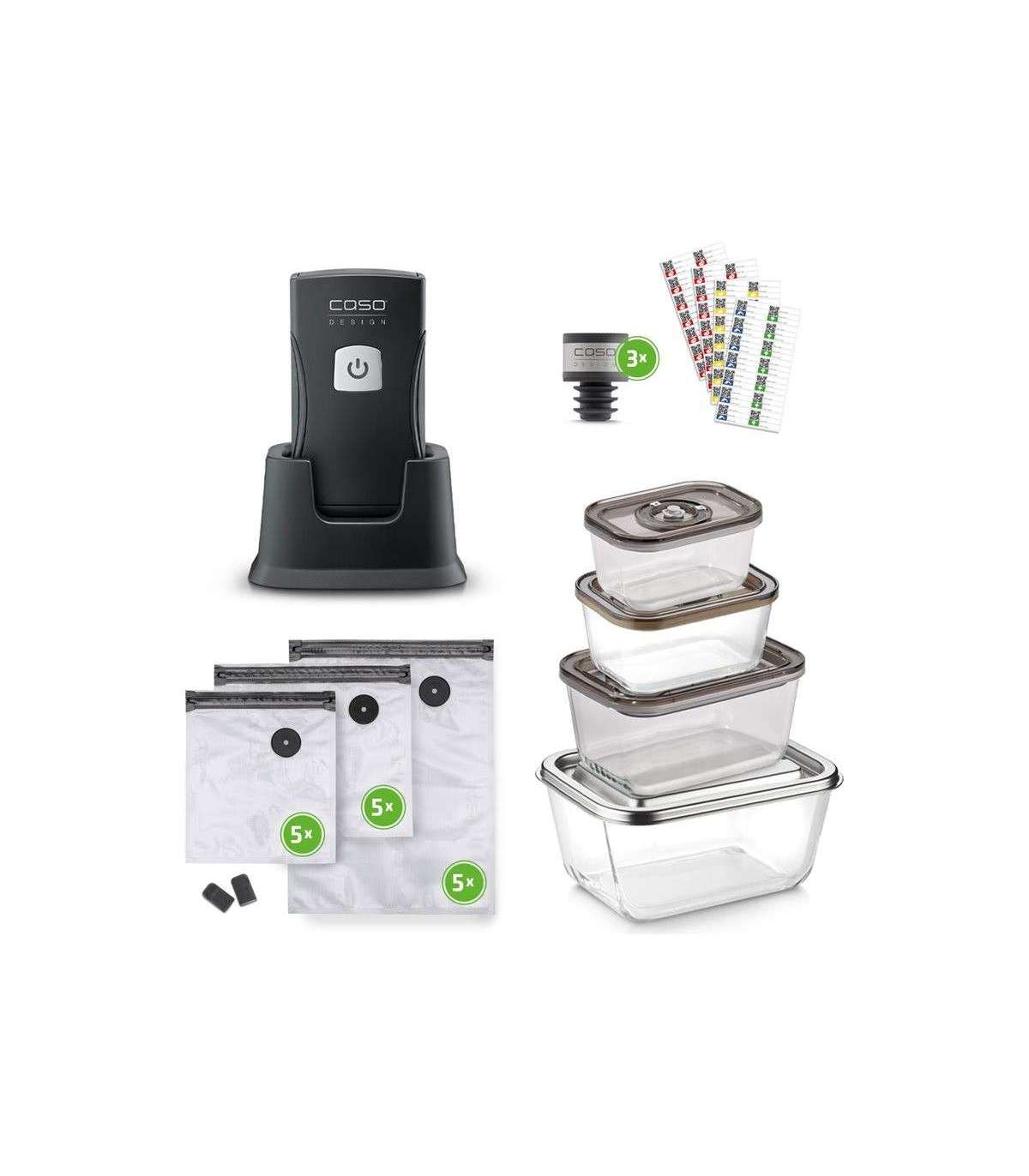 Caso Professional Hand Vacuum Sealer with Accessories | Vacu OneTouch Pro Set | Power 20 W | Black