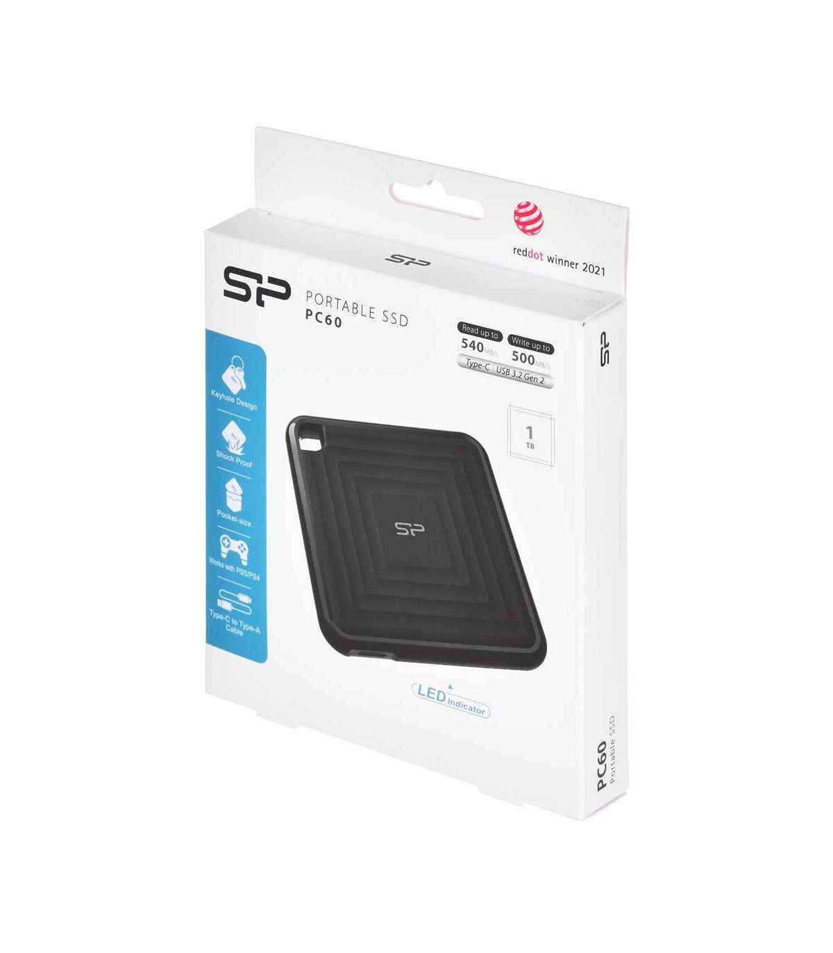 Silicon Power PC60 Portable SSD 1 TB USB Type-A to USB Type-C 3.2 Gen 1 (3.1 Gen 1) Black