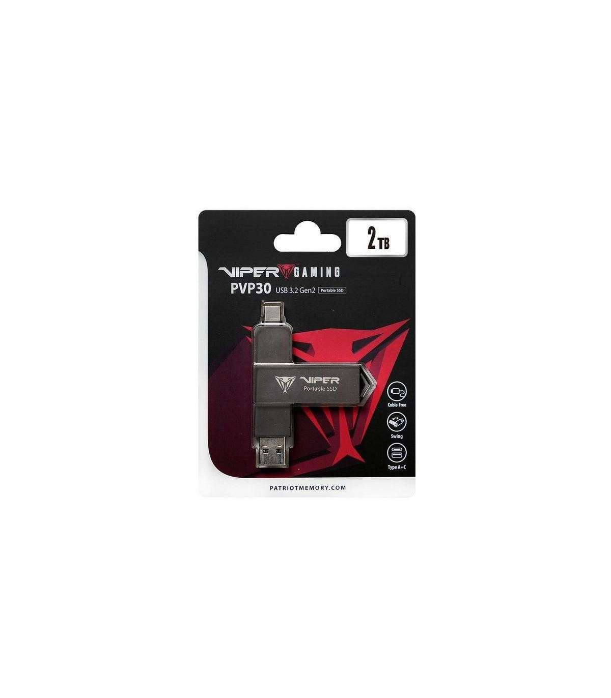 Patriot PVP301TB28UDG PVP30 Duo Compact Portable SSD, 1TB, USB Type-C/A, PCIe, 1,000 MB/s, Black