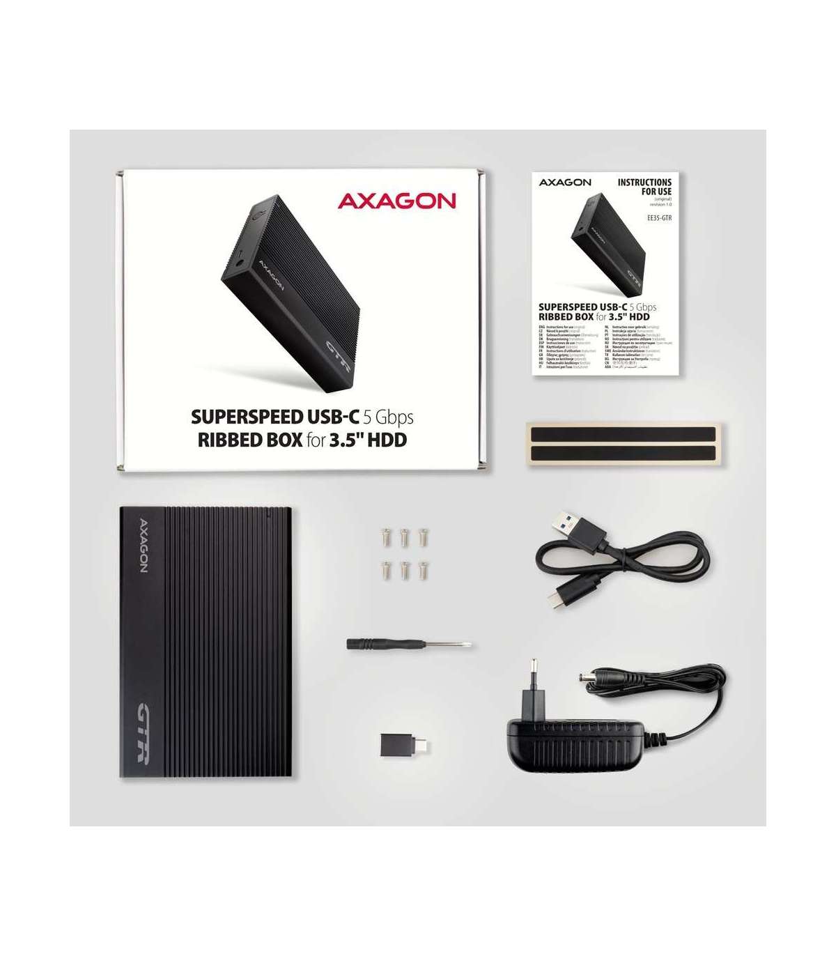 AXAGON Ribbed aluminum USB 3.2 Gen 1 - SATA 6G external box for 3.5" HDD | EE35-GTR