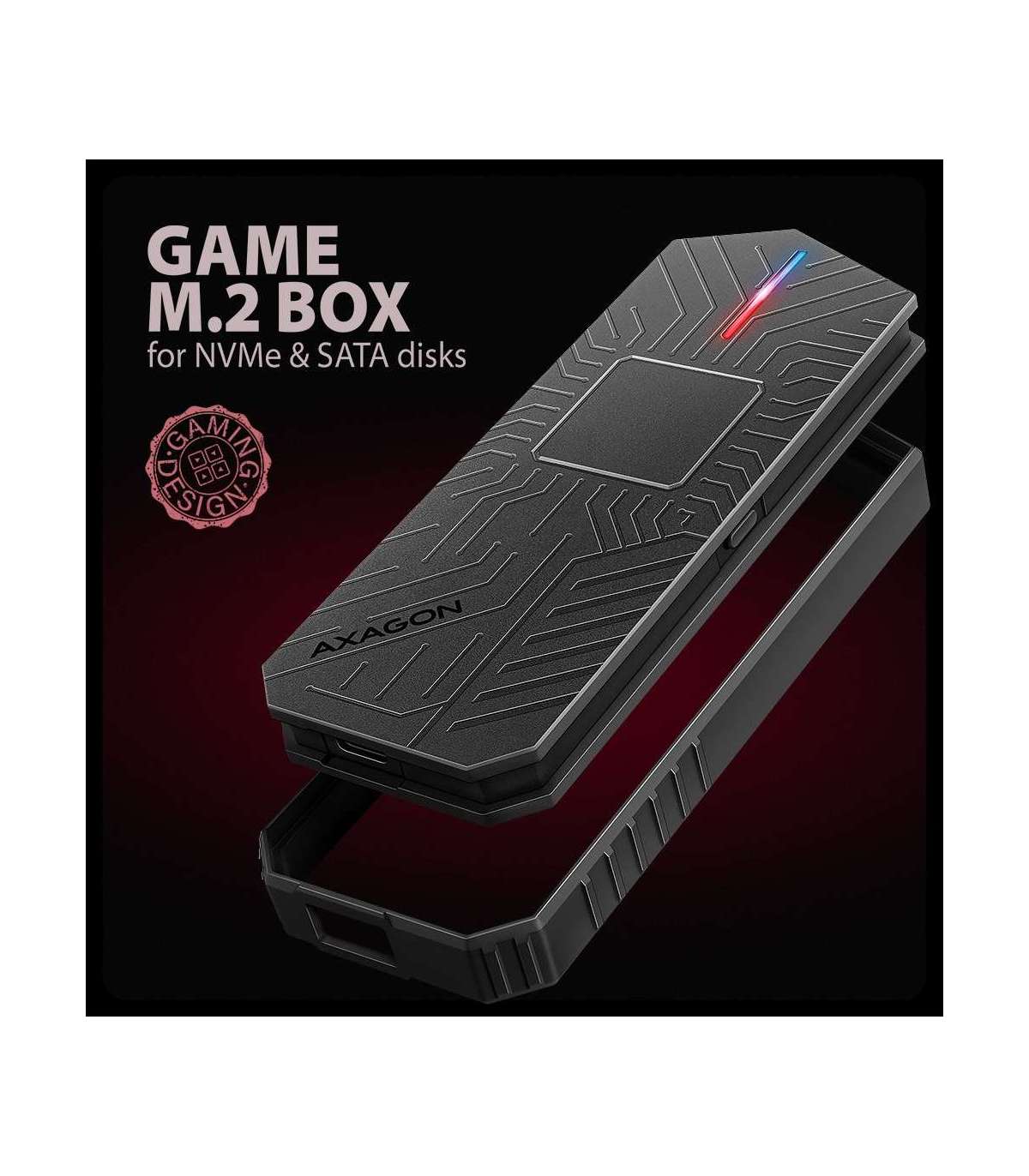 AXAGON USB-C 10Gbps - M.2 NVMe and SATA SSD GAME M.2 box | EEM2-GAM