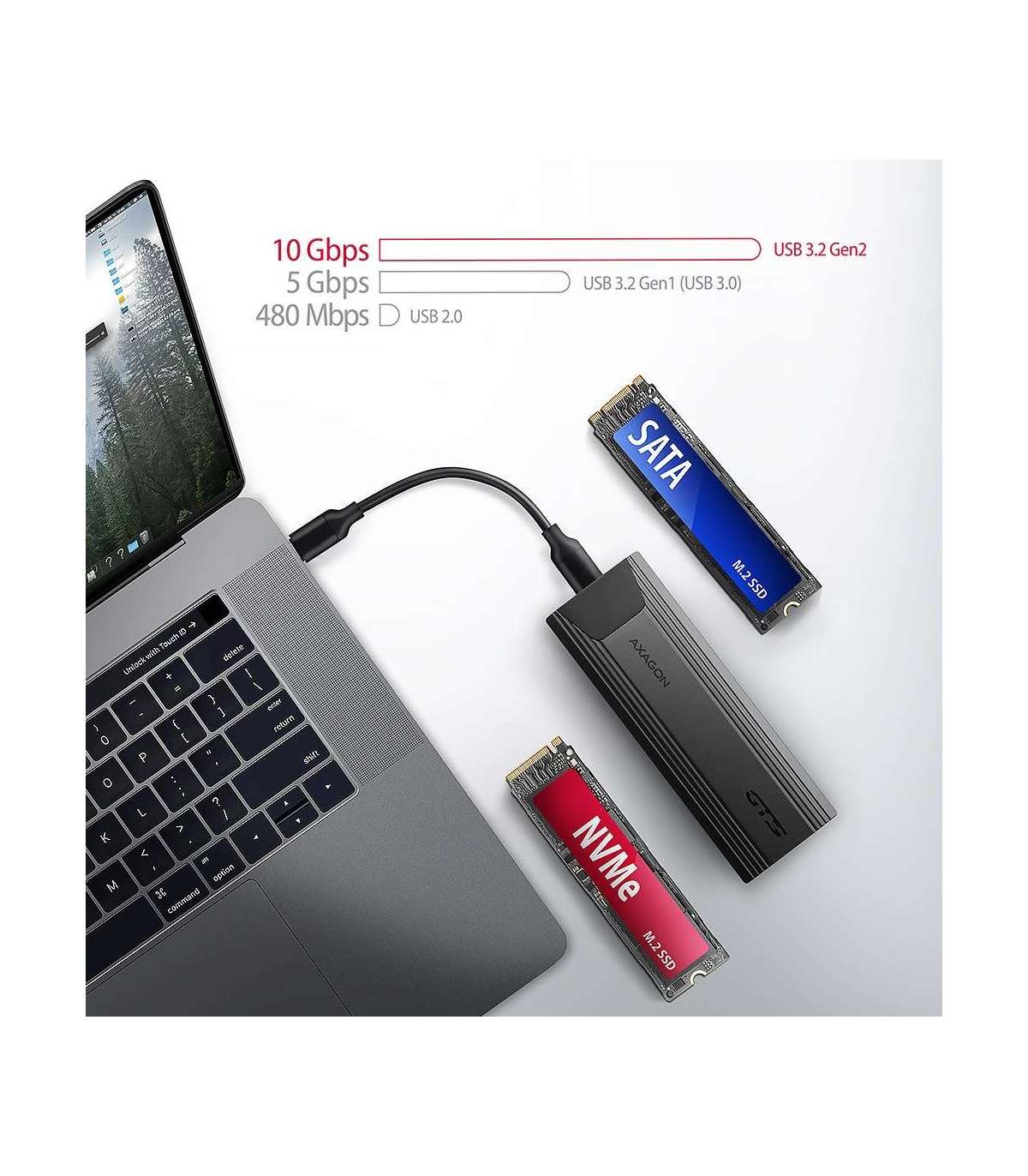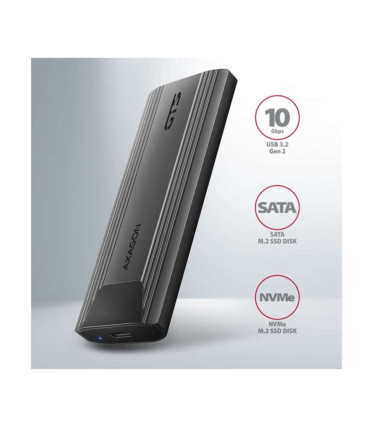 AXAGON USB-C 10Gbps - M.2 NVMe and SATA SSD THIN SCREWLESS box EEM2-GTS2