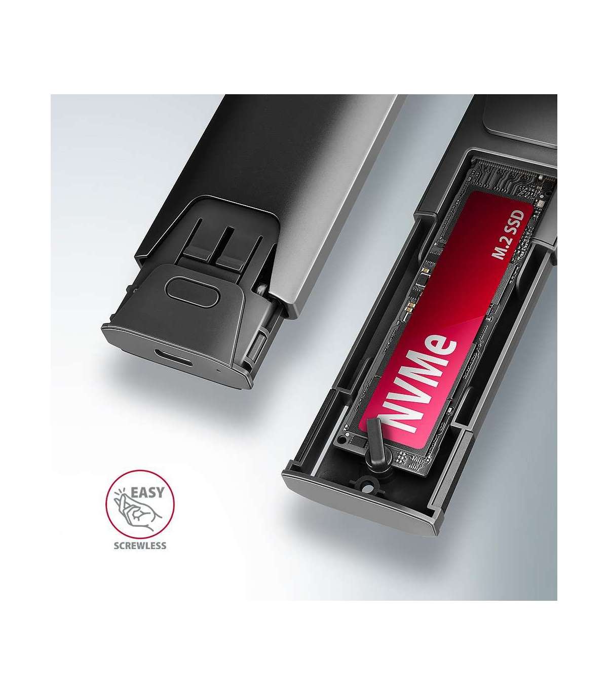 AXAGON USB-C 10Gbps - M.2 NVMe and SATA SSD THIN SCREWLESS box | EEM2-GTS2