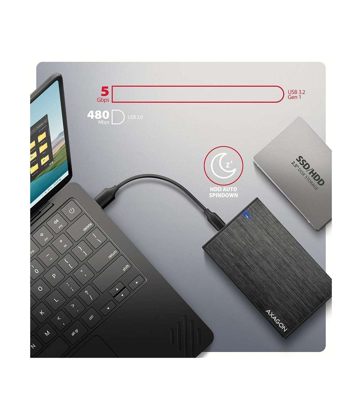 AXAGON EE25-XA6C USB-C 3.2 Gen 1 - SATA 6G 2.5" External ALINE Box