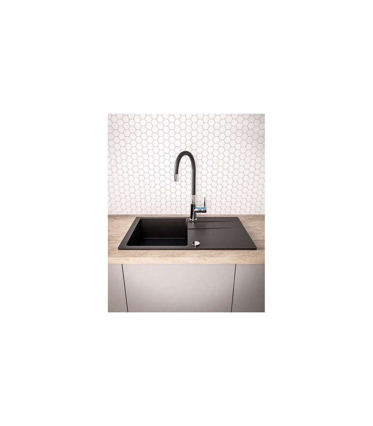 BALI sink (62x44) 1B1D black + Lungo mixer tap