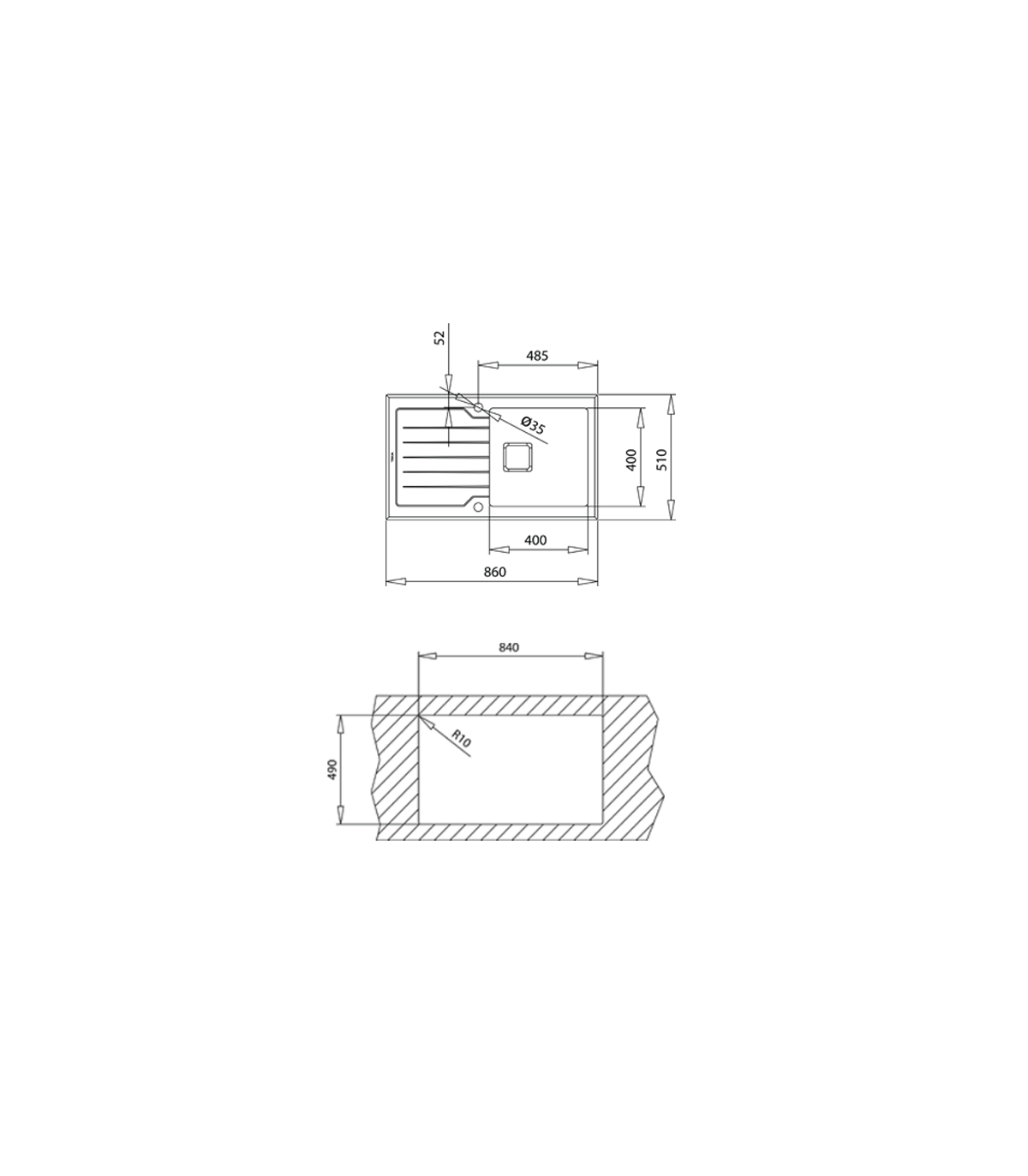Valamut on võimalik paigaldada 2 pidi ning mõlemale küljele on loodud segisti augu eeldus (löökauk).
