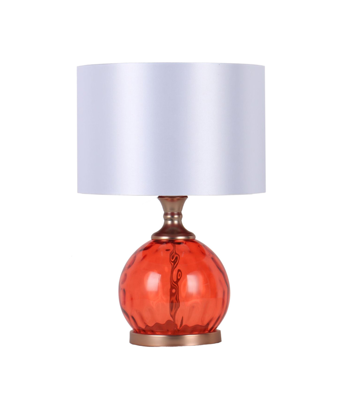 Laualamp LUXO, H45cm, punane klaas, kuppel: valge/oranž satiinsiid