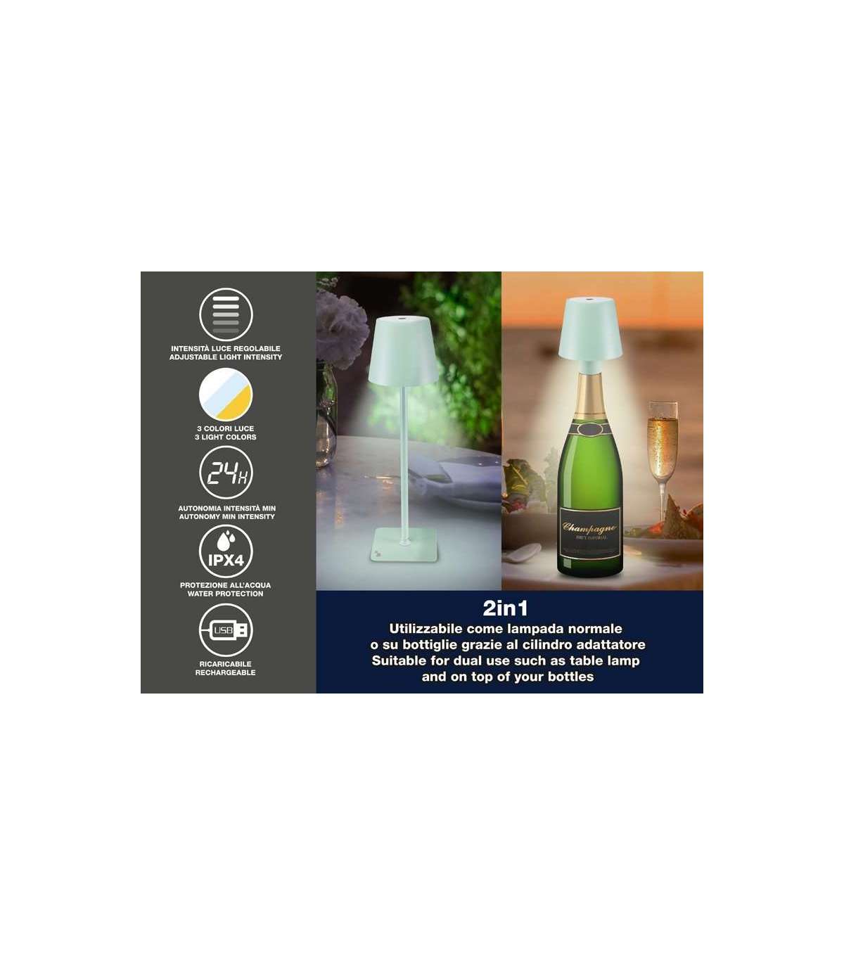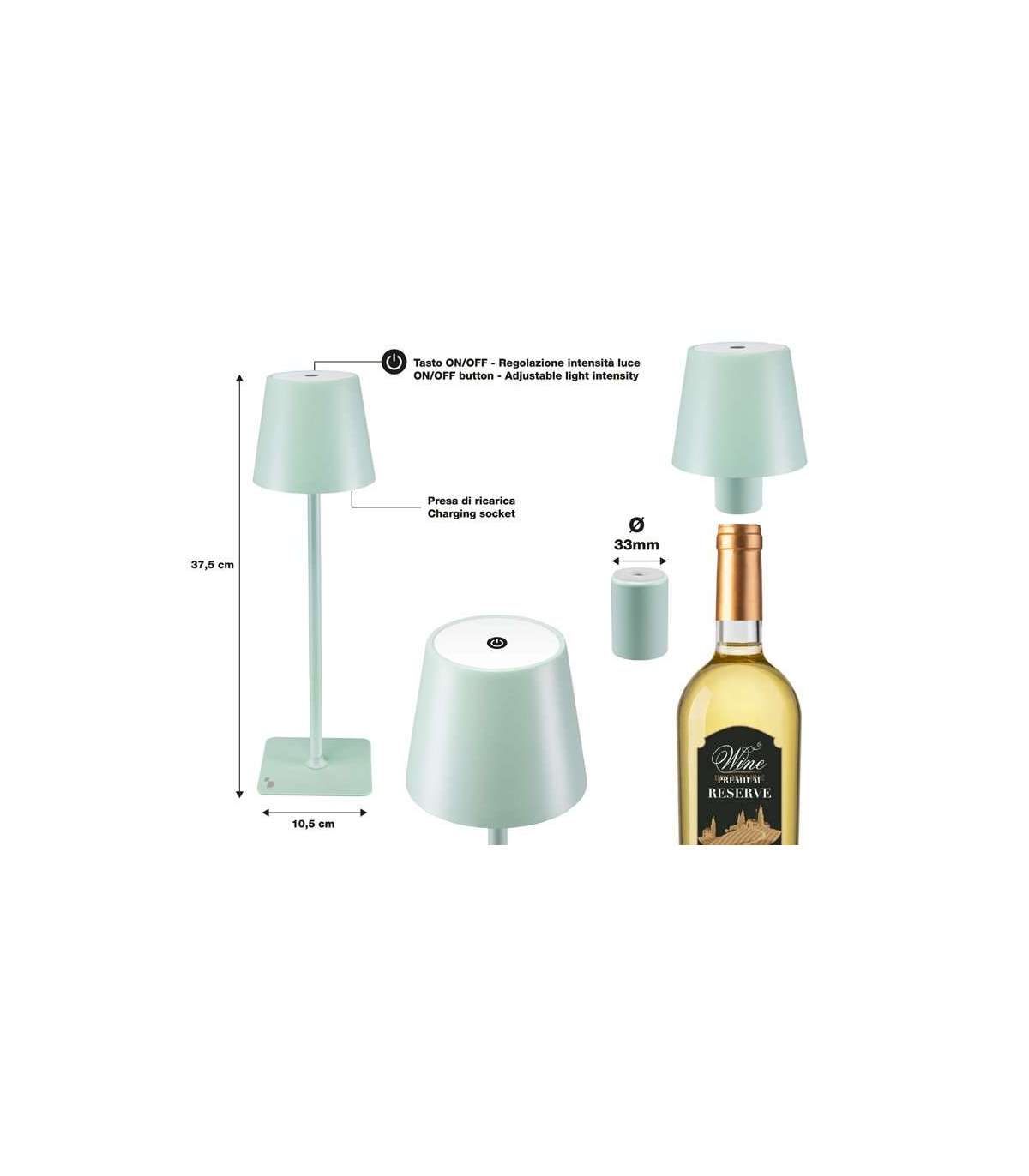 Kaasasolev 33 mm pudeliadapter pakub elegantset alternatiivi lauaversioonile, kuna saate asetada meie lambi teie lemmikpudelile laua keskele.