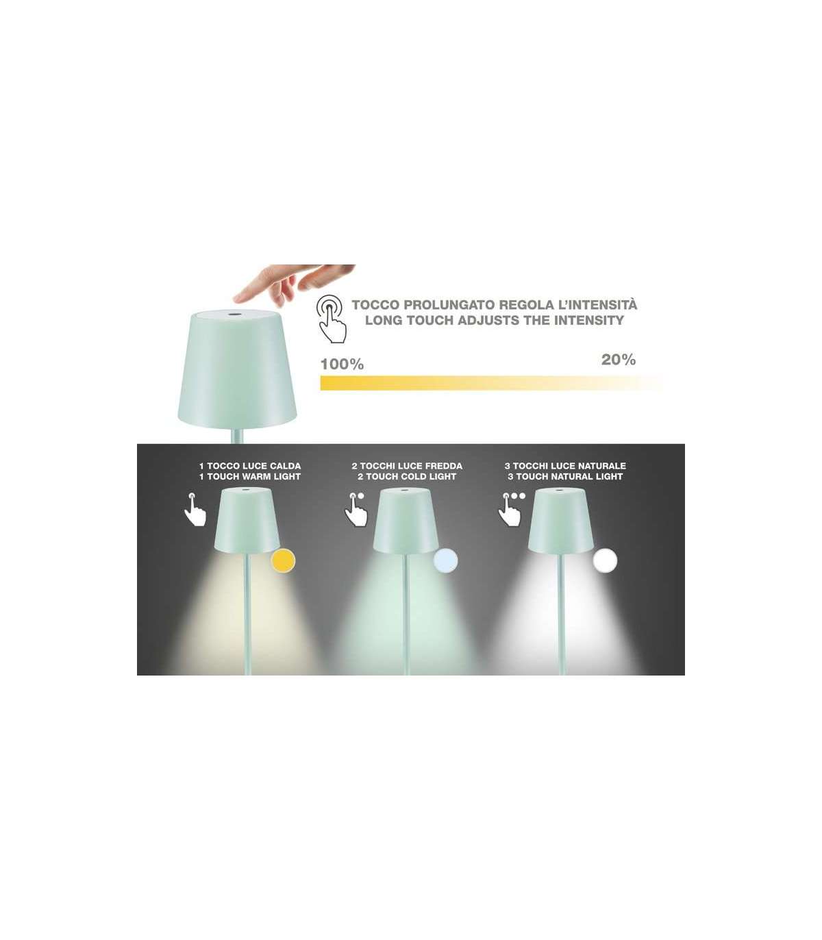 Lihtsa puudutusega saate valida sooja, külma või loomuliku valguse vahel.