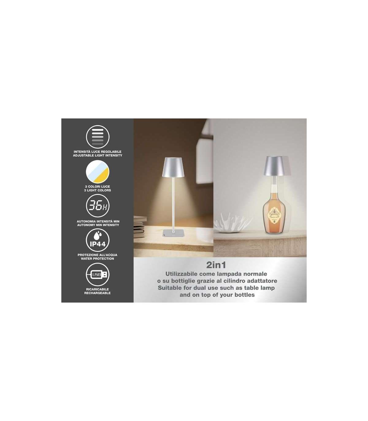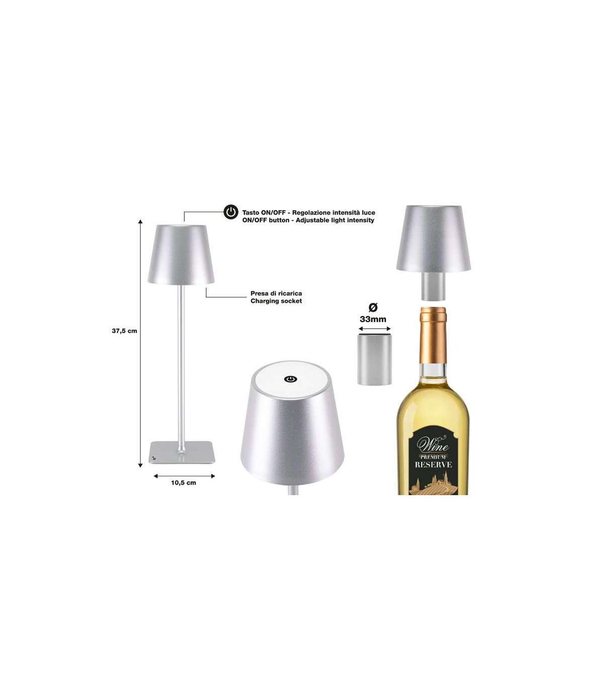 Kaasasolev 33 mm pudeliadapter pakub elegantset alternatiivi lauaversioonile, võimaldades teil asetada meie lambi oma lemmikpudelile laua keskele.