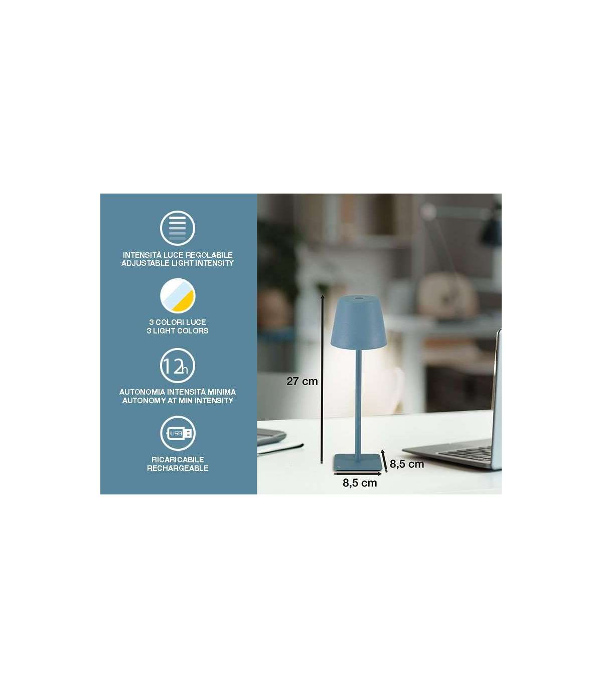 Puutelülitiga laetav laualamp.