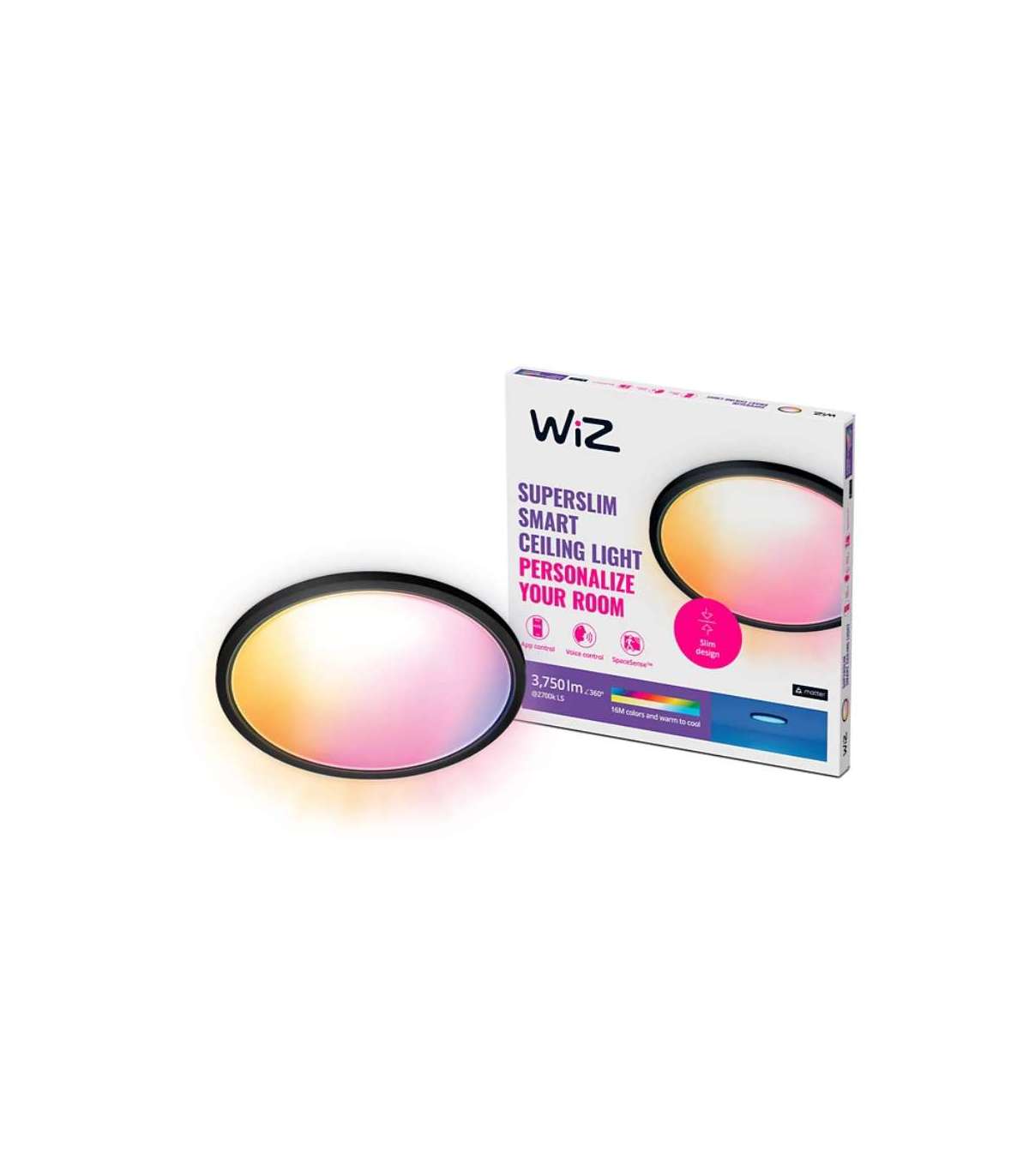 WiZ Smart WiFi SuperSlim Ceiling 545mm, Black 32 W 2200-6500 K (RGB)