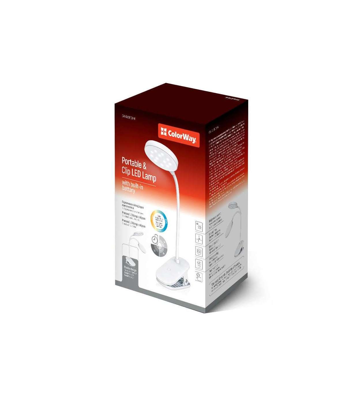 ColorWay LED Table Lamp Flexible and Clip 2 with Built-in Battery CW-DL10FCB-W