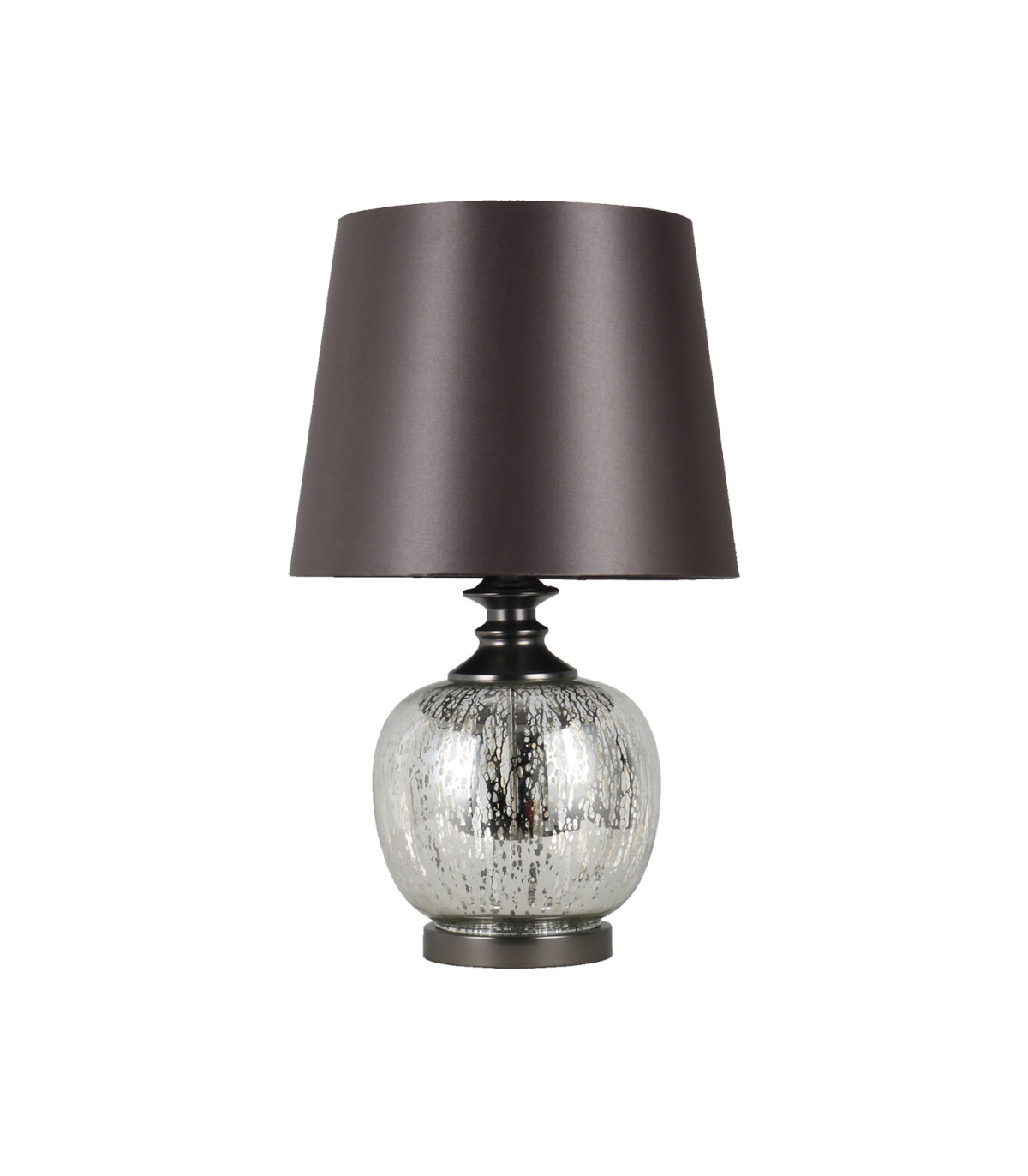 Laualamp LUXO, H58cm, jalg: antiikhõbe/klaas, kuppel: tumehall satiin siid/sisepind - tume hõbe satiin siid. Efektsete klaasdetailidega lauavalgusti, mis muudab hubasemaks iga kodu. Lambipirni sokkel E27, max. 60W.