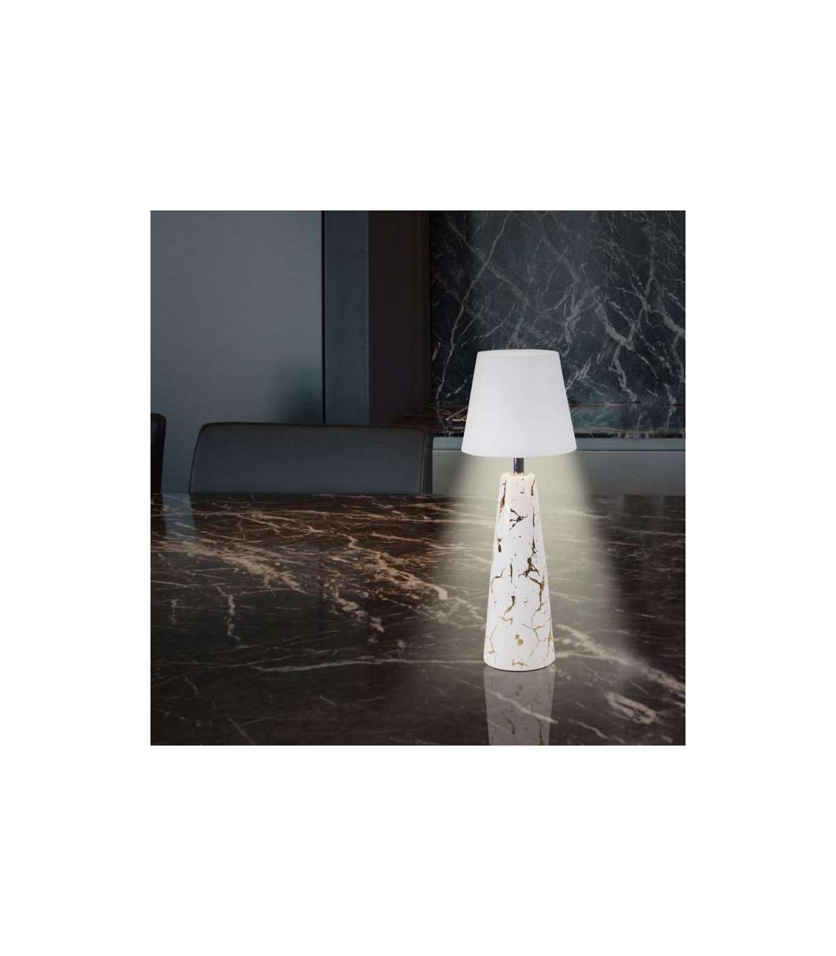 Valge marmoriefektiga keraamilise jala ja kuldsete detailidega MARBLE Beperi laetav laualamp on enamat kui lihtsalt valgusallikas: see on elegantne ja kaasaegne mööbliese, mis sobib ideaalselt iga ruumi kaunistamiseks.