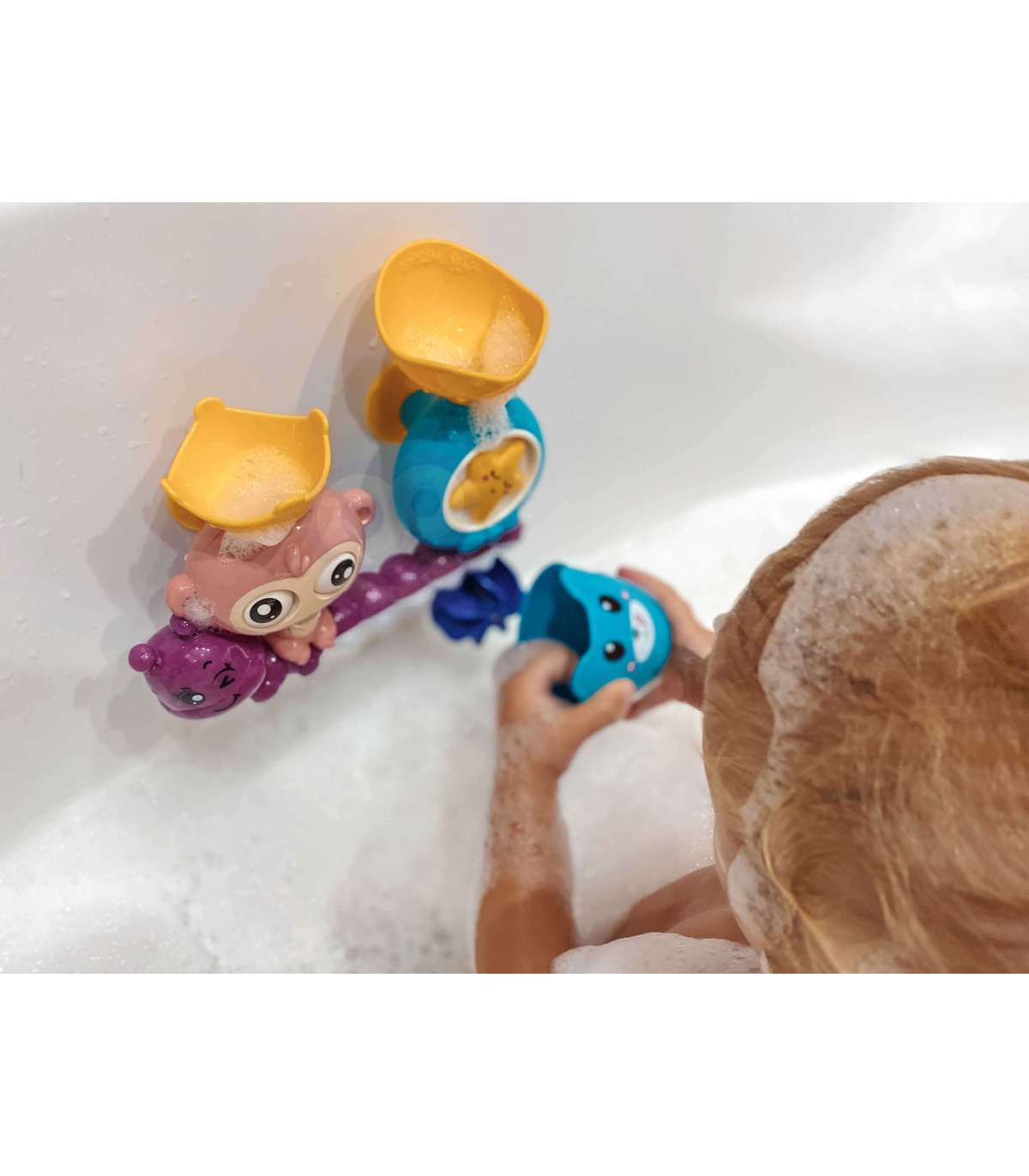 Vee mänguasi Animals brändilt WOOPIE pakub lapsele huvitavat aega vanni ajal. Laps kasutab tassi, et valada vett ahvi kübarasse. Vee valamisel ahvi silmad keerlevad ringi, suu avaneb ja valab vett otse vanni. Röövikust ja tähelt voolab vesi vesiratta peale, mis segab vett. Lisaks on sellel seljal 2 iminappa, nii et saab selle kinnitada vannitoa seinale või vanni külge. Mänguasi mitte ainult ei tee vanniskäiku lõbusamaks, vaid ka arendab kujutlusvõimet ja peenmotoorikat ning suurendab teadlikkust ümbritsevast maailmast, ja eelkõige aitab keskenduda ning hoiab last tegevuses vannitamise ajal.