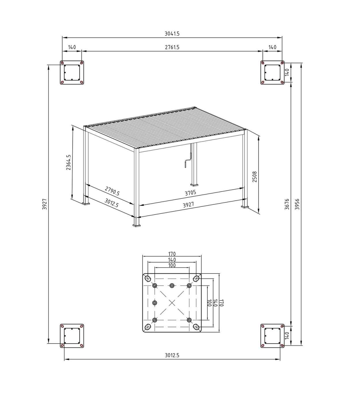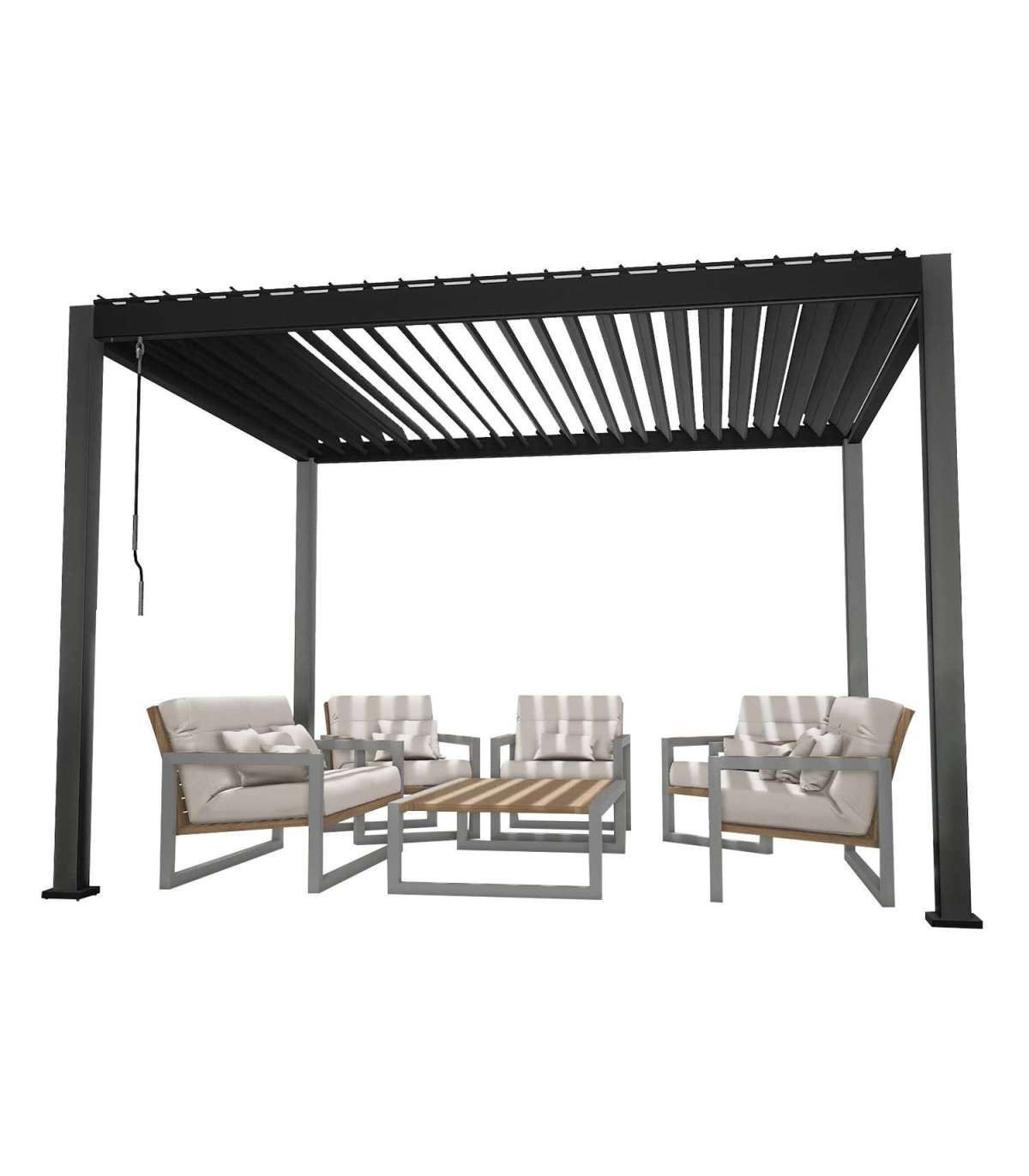 Varikatus MIRADOR-111 3x4xH2,5m, tumehall. Kaasaegne, elegantne ja funktsionaalne varikatus/aiapaviljon sobib kõikjale - aeda, terrassile, basseini äärde või auto varjualuseks. Varikatus on kasutatav aastaringselt. Uuenduslik lamellkatus on vändaga avatav ja suletav ning pakub kaitset ja varju nii kerge vihma, kui kõrvetava päikese eest. Suletud lamellidega katus on veekindel. Tänu sisse ehitatud vihmaveesüsteemile juhitakse vesi ohutult katuselt ära. Komplekti kuuluvad kardinasiinid ja 4 lukkudega seina, mis on valmistatud vastupidavast ja ilmastikukindlast textilene kangast 265g/m². Varikatuse põhikonstruktsioon on valmistatud alumiiniumist ja viimistletud tumehalli pulbervärviga. 4 tugiposti 111x111mm, horisontaaltala 140x75mm, galvaniseeritud terasest katuselamellid 173x30mm. Varikatuse täpsed mõõdud on 3012,5x3927x2508mm. Paigaldage varikatus stabiilsele ja tasasele aluspinnale ja kinnitage korralikult. Juhul, kui kasutate varikatus aastaringselt, jälgige, et katusele ei koguneks liigselt lund. Eemaldage kogunenud lumi esimesel võimalusel. Jälgige, et vee äravooluavad oleksid vabad. Enne talvehooaja algust kontrollige, et küljepostidesse ei oleks kogunenud vett. Jäätumise korral võib vesi poste kahjustada.