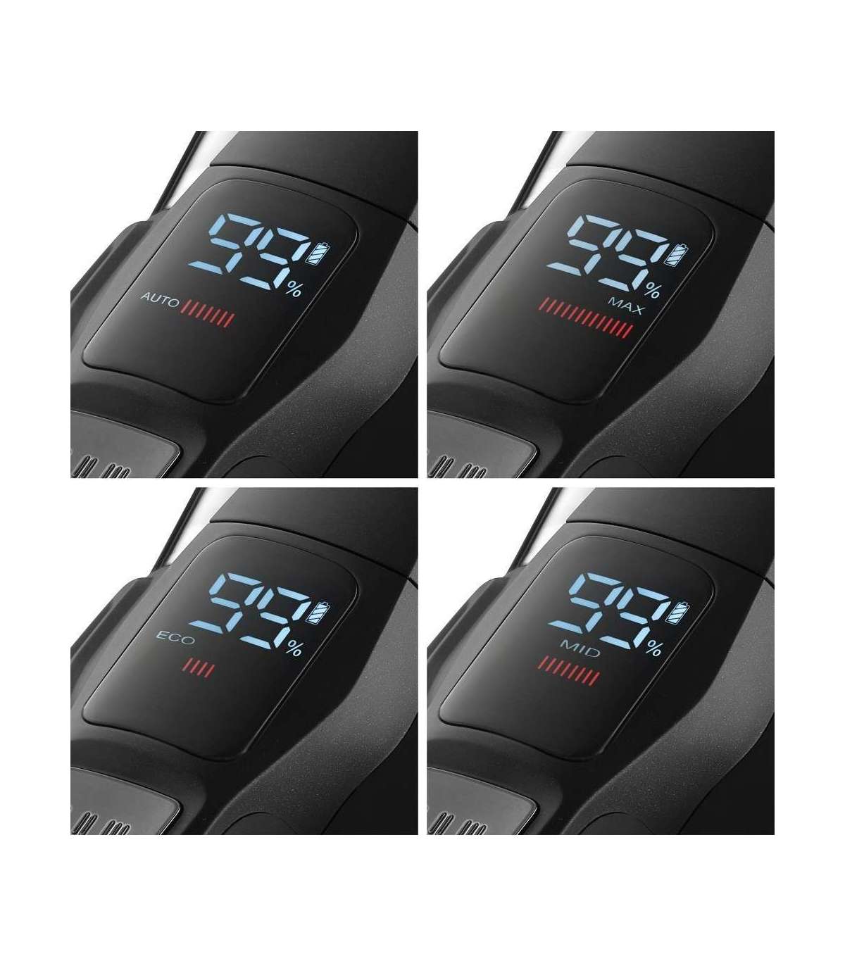 Digitaalne ekraan näitab aku olekut ja toiterežiimi.