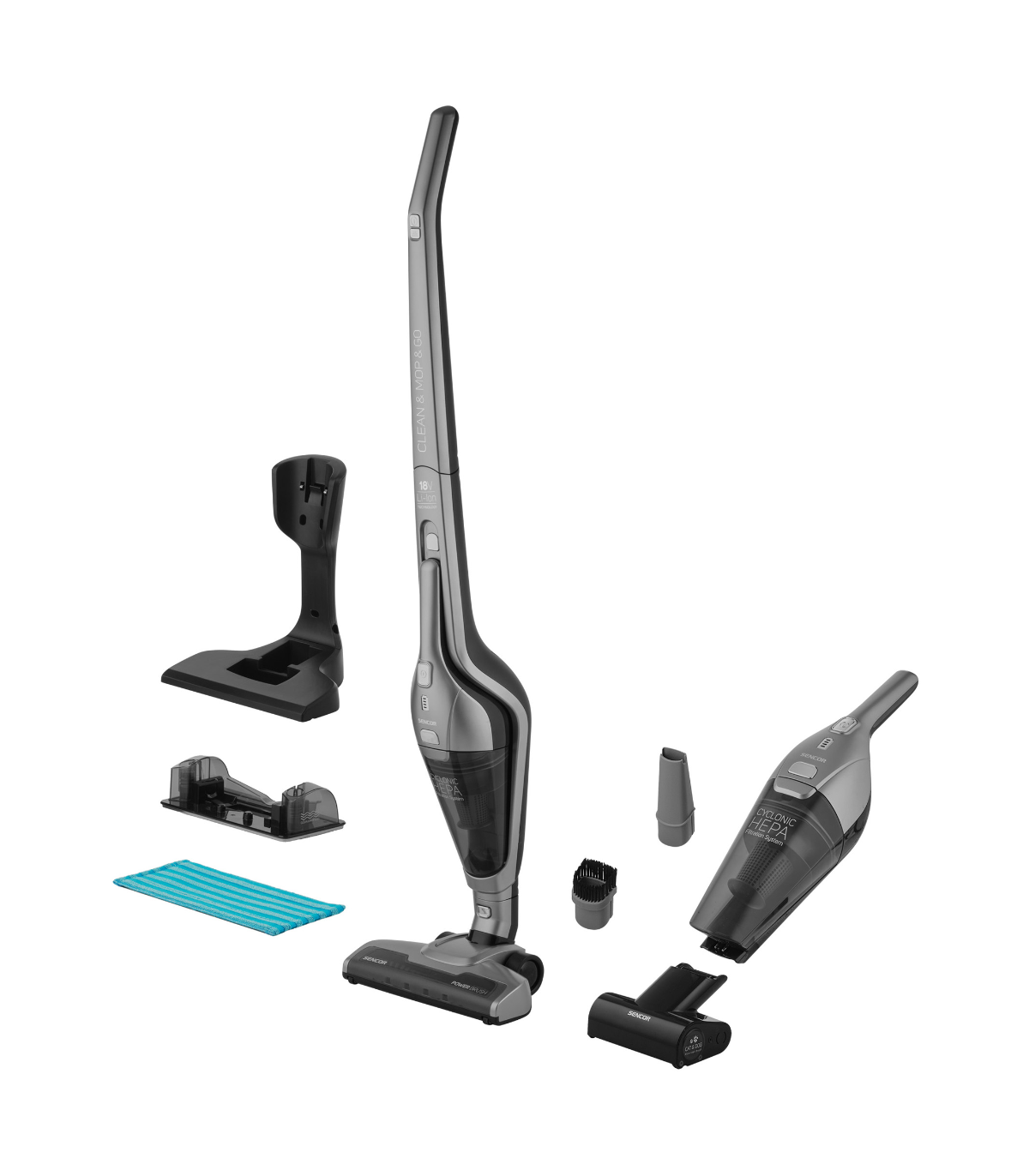 Komplektis: varstolmuimeja koos käsiseadmega, Cat & Dog Mini mootoriga pöörlev hari, laadimisjaam, toiteadapter, mopimiskinnitus, 5x tekstiilist pesulapp, piluotsik, tolmuhari