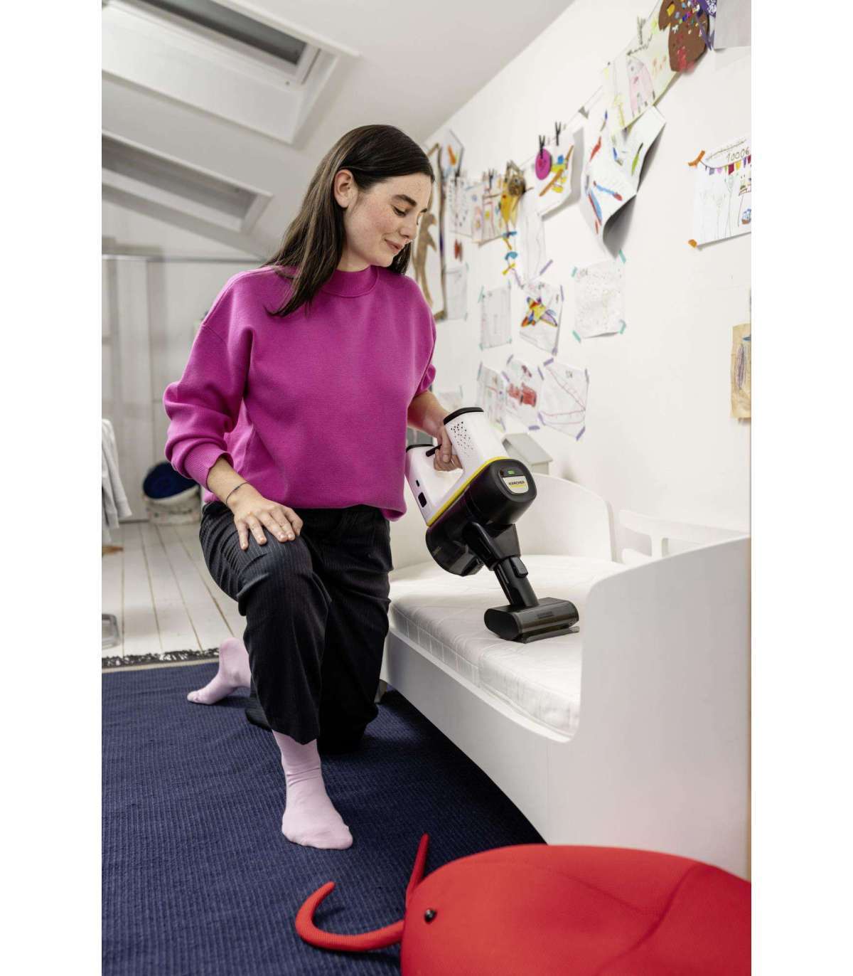 Versatile in operation thanks to an extensive range of accessories: the VC 6 Cordless ourFamily Extra is perfectly equipped for every task required of a vacuum cleaner. It provides maximum convenience with a run time of up to 50 minutes. The 250-watt BLDC motor makes vacuuming effortless, whether cleaning the entire house or tidying up little spills. The motorised floor nozzle with LED lighting vacuums just as thoroughly on hard floors as it does on carpets. There is also a motorised mini turbo brush for upholstered furniture and mattresses. For extra convenience, it has a 1-click operation to empty the dust container, the boost function for extra suction power, an ergonomic design for easy access under furniture, a three-level battery indicator and low-noise vacuuming. The lock button removes the need to hold down the power button all the time. Its low weight means the device can also be used as a compact handheld vacuum cleaner. The scope of supply includes an LED crevice nozzle for dark corners and nooks, a 2-in-1 soft furniture brush, a filter cleaning tool, as well as a second replacement filter and a freestanding parking station incorporating accessory storage and charging function.