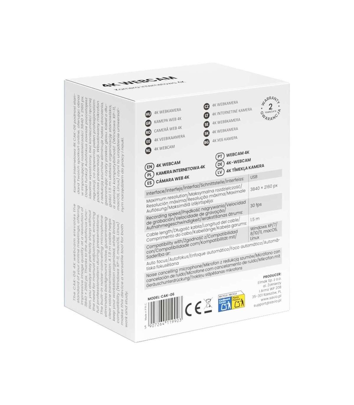 Savio CAK-06 webcam 3840 x 2160 pixels USB Black