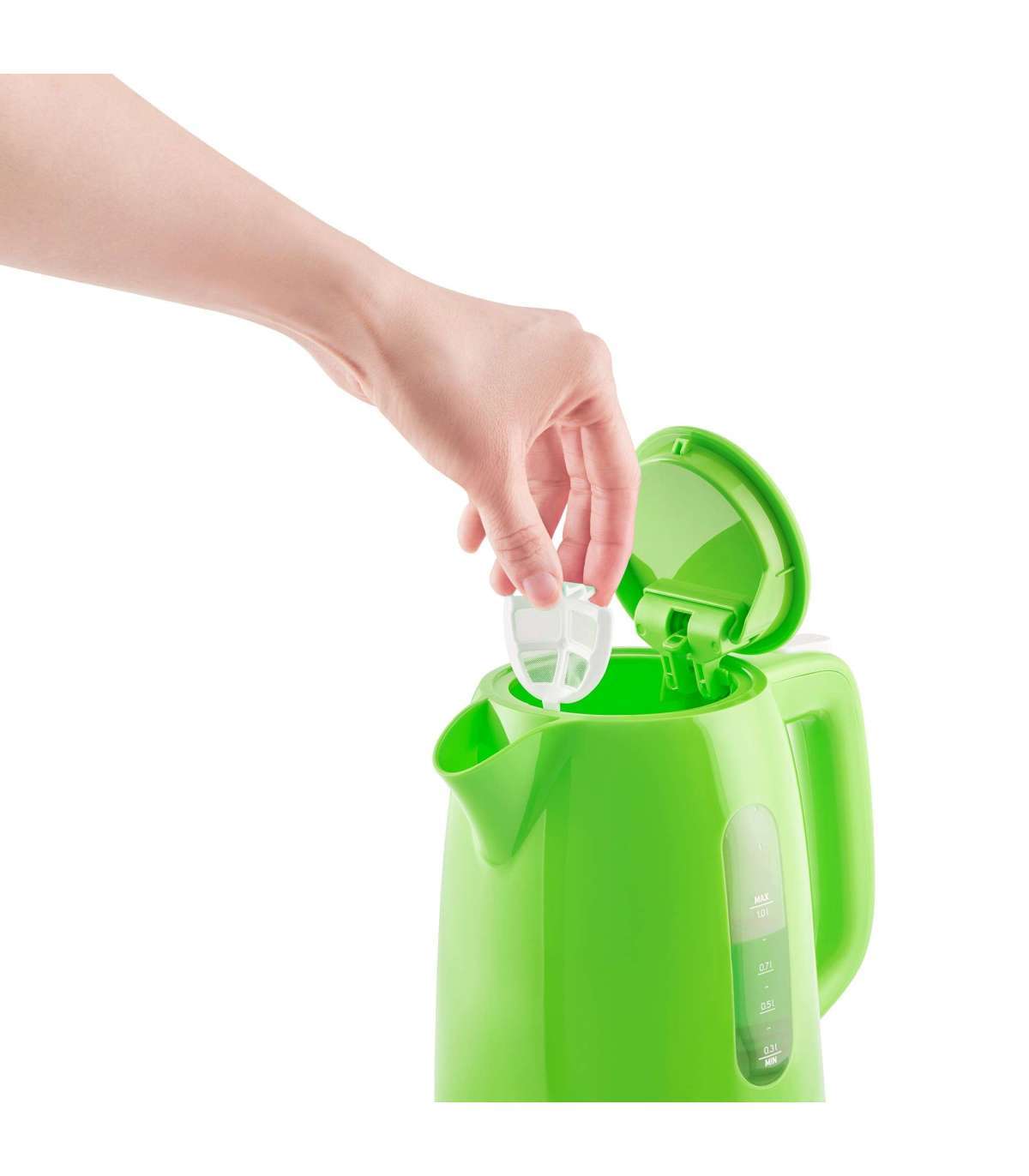 Eemaldatav katlakivi ja mustuse filter hoiab teie vee puhtana. Automaatne nupuvajutusega kaaneava teeb veekeetja veega täitmise lihtsaks vaid ühe käega. Veetaset näete veekeetja küljel oleva läbipaistva akna kaudu. Alus võimaldab veekeetjat 360° pöörata. Toitekaablit saab mugavalt aluse alumisel küljel hoida.