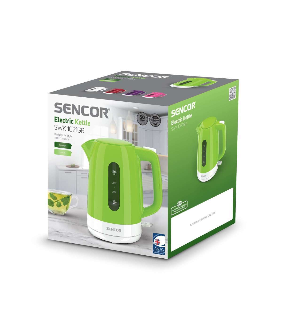 Sencor SWK1021 veekeetjas on kuumade jookide valmistamine kiire ja lihtne. Veekeetja on valmistatud BPA-vabast plastist. Sellel on kvaliteetne Strixi keskpistik kolme ohutusfunktsiooniga ja automaatse väljalülitusfunktsiooniga. Lülitis olev tuli annab märku, kui veekeetja on sisse lülitatud. Roostevabast terasest pinnaga peidetud küttekeha võimsusega 2200 W tagab kiire keemise ja aja kokkuhoiu.