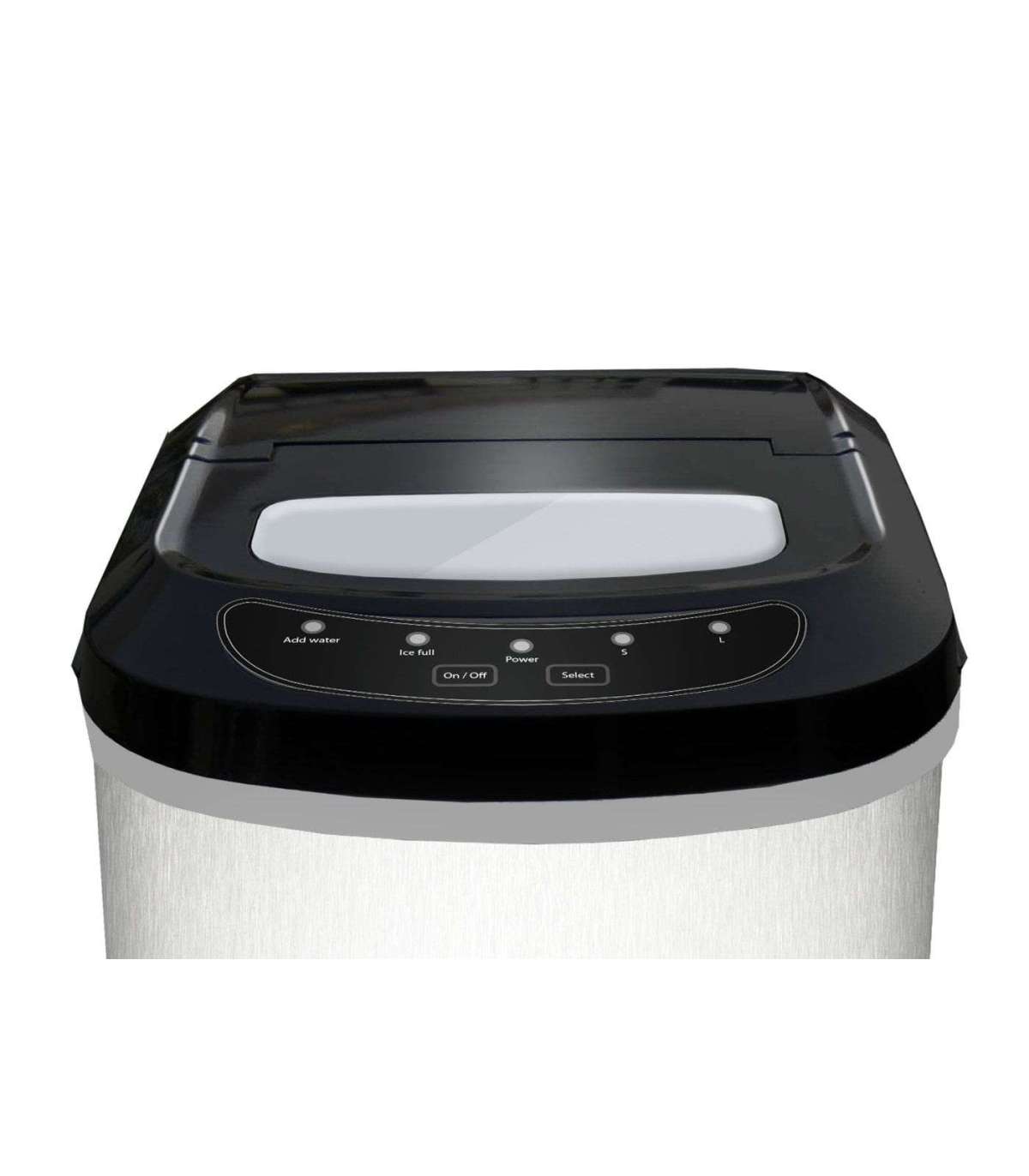 to quickly make ice cubes in 6-13 minutes, Two ice cube sizes, small & big, Good insulation, Stainless steel look, Compressor technology, Top cover with transparent window, Maximum water level, Automatic stop