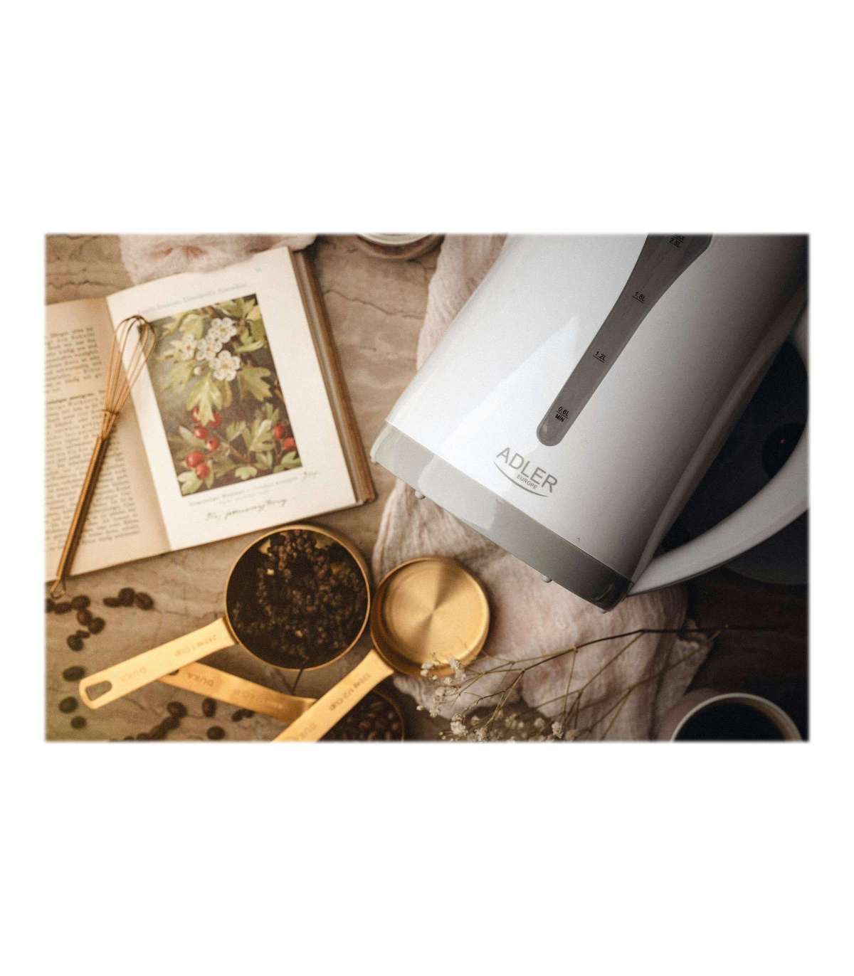 Kettle | Adler | AD 1244 | Standard kettle | 2000 W | 2.5 L | Plastic | 360° rotational base | White