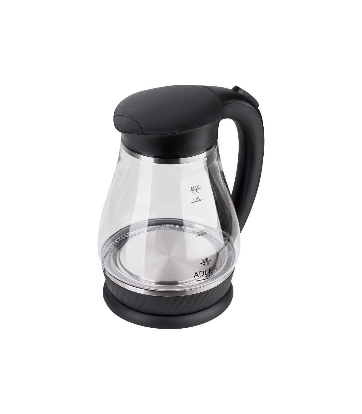 Adler Kettle AD 1274 Standard 2200 W 1.7 L Plastic/Glass 360° rotational base Black/ transparent