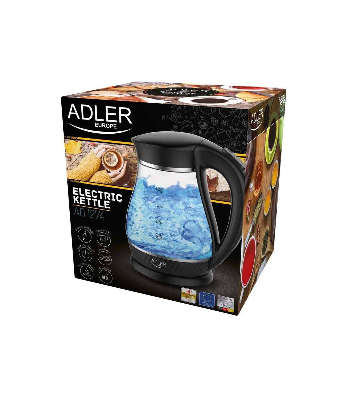 Adler | Kettle | AD 1274 | Standard | 2200 W | 1.7 L | Plastic/Glass | 360° rotational base | Black/ transparent