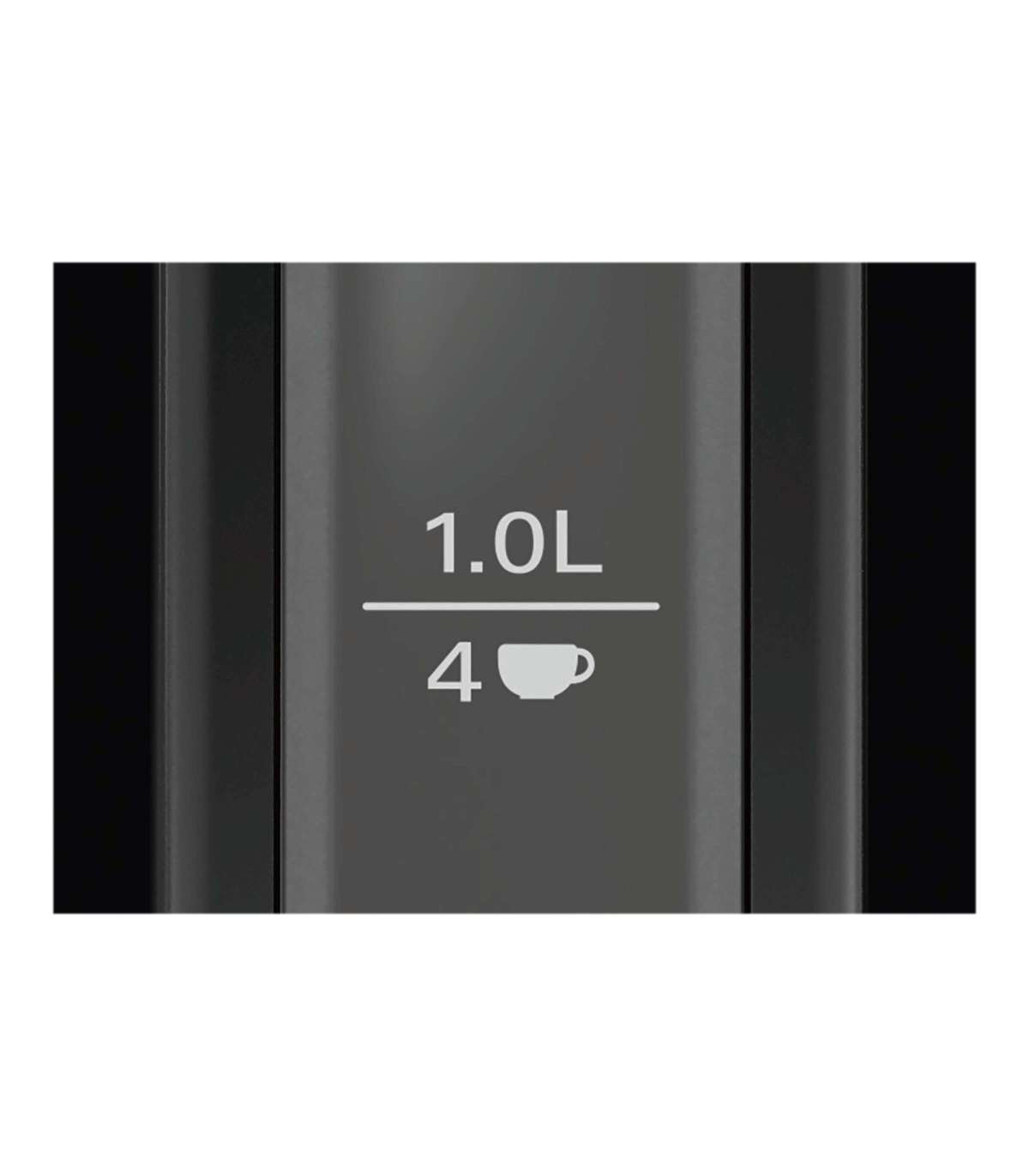 Cup indicator; Optimal beak construction; Clear water scale; Ergonomic use; Triple protection: automatic shutdown, overheating and drying protection, automatic shutdown after lifting the jug from the base