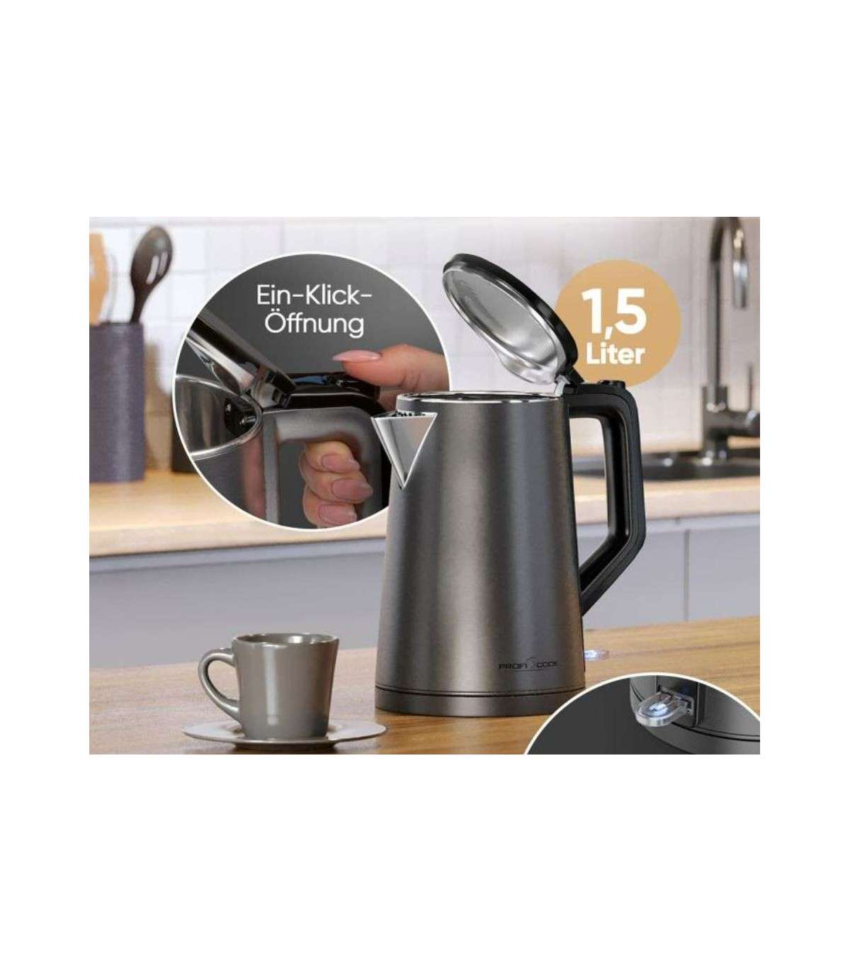 Topeltseintega termokorpusega ja kvaliteetse roostevabast terasest sisemusega veekeetja ProfiCook!
