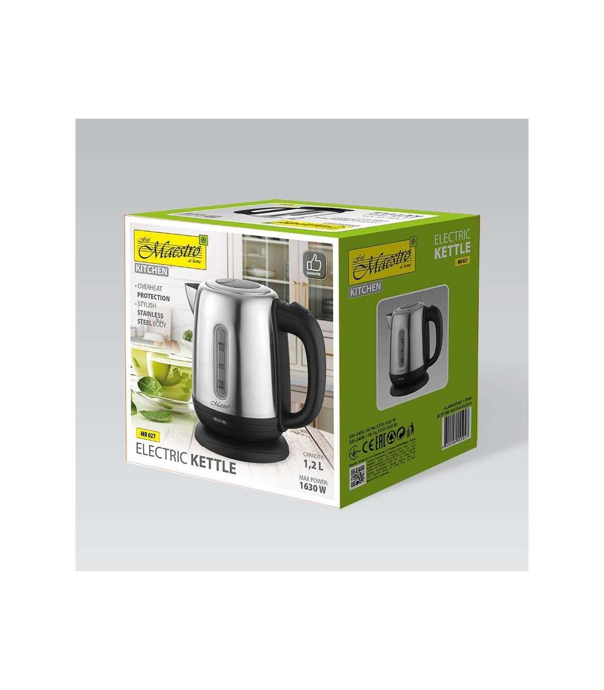 MAESTRO MR-027 electric kettle 1.2 L 1630 W Steel, Black