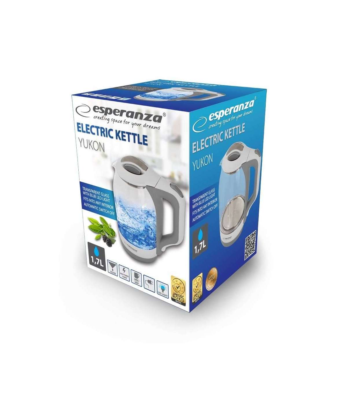 Esperanza EKK025W Electric kettle 1.7 L White, Multicolor 1500 W