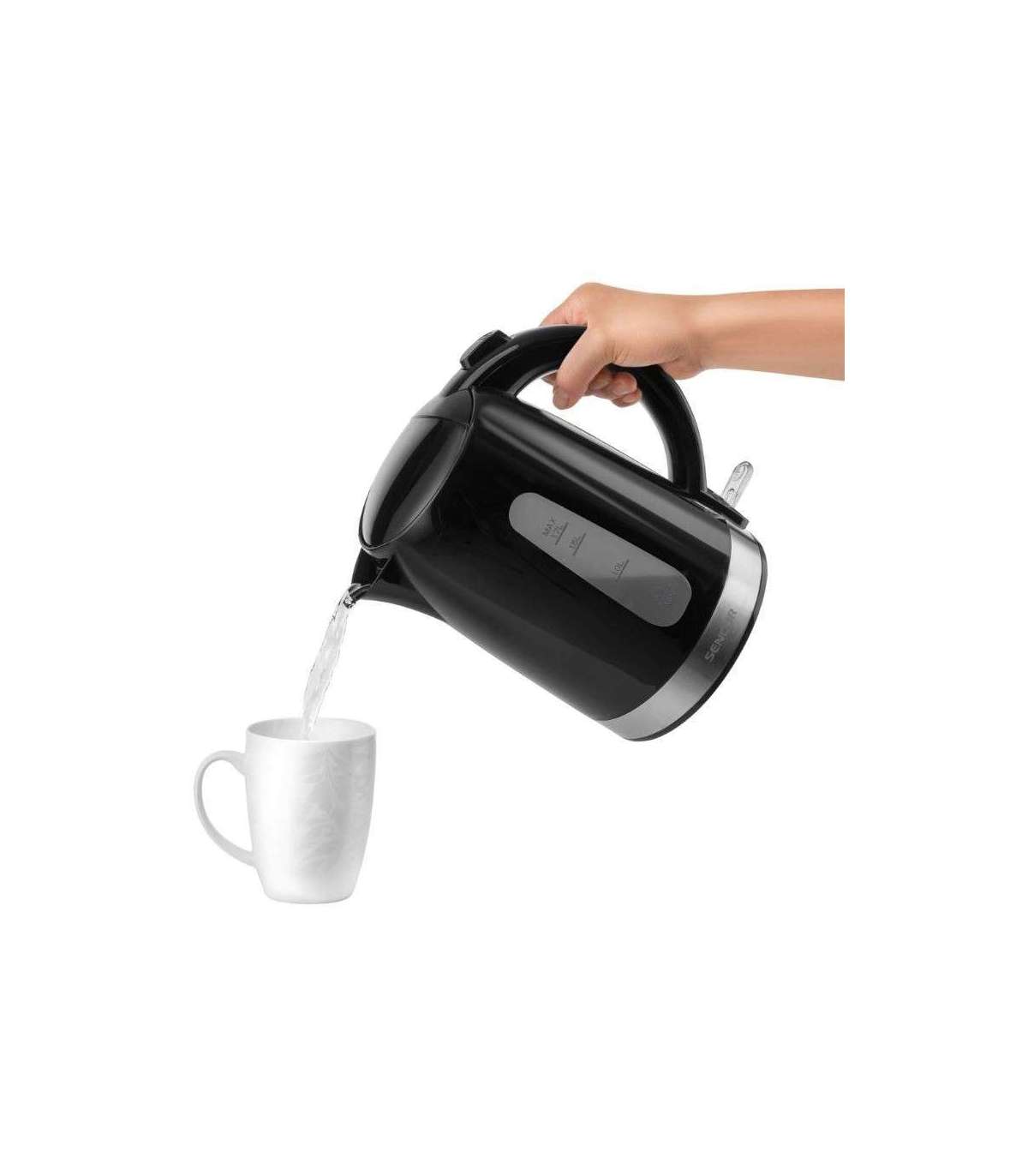 Kaetud küttekehaga metallkorpusega veekeetja kuumutab vee mõne minutiga.