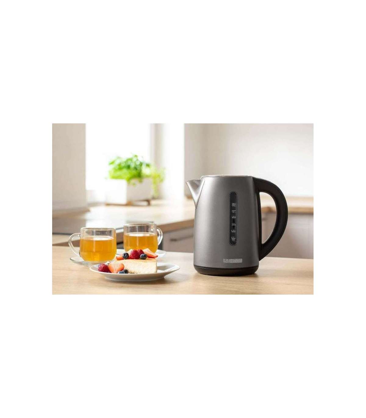 Roostevabast terasest kauni disainiga veekeetja.