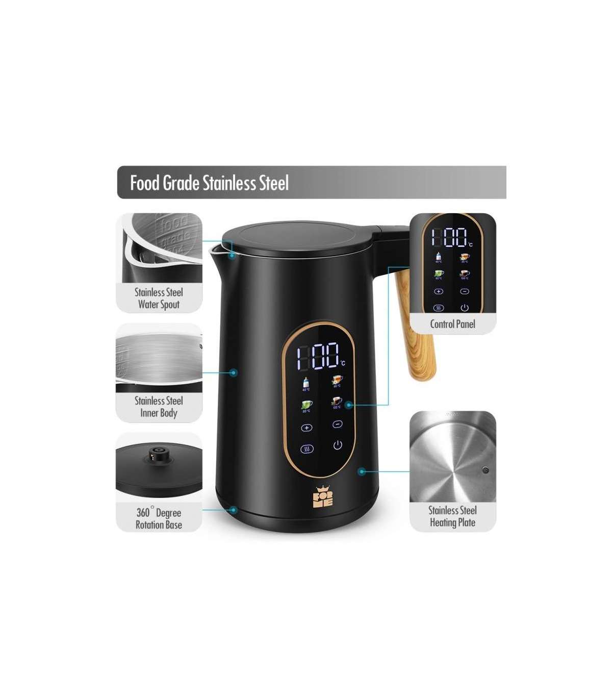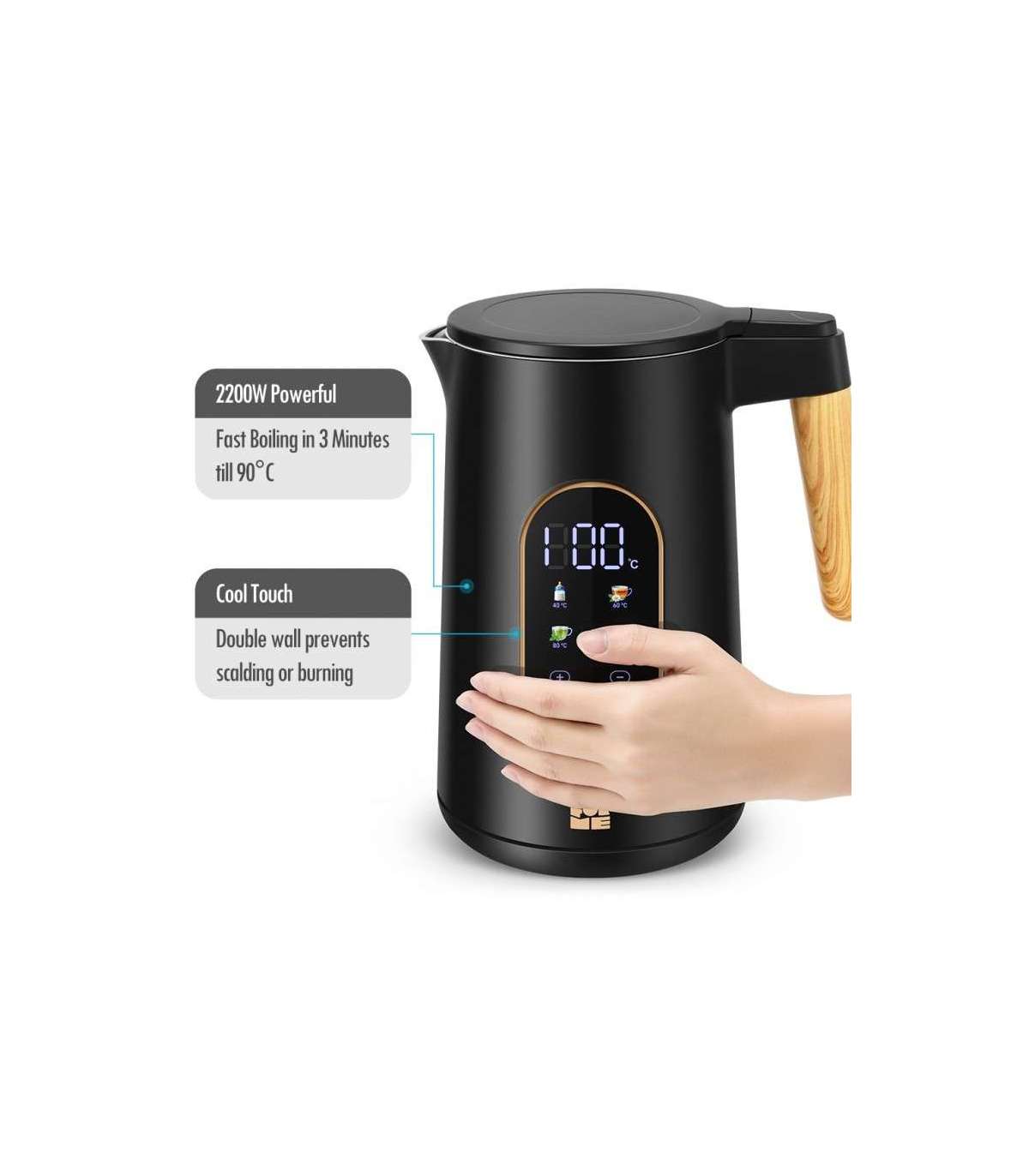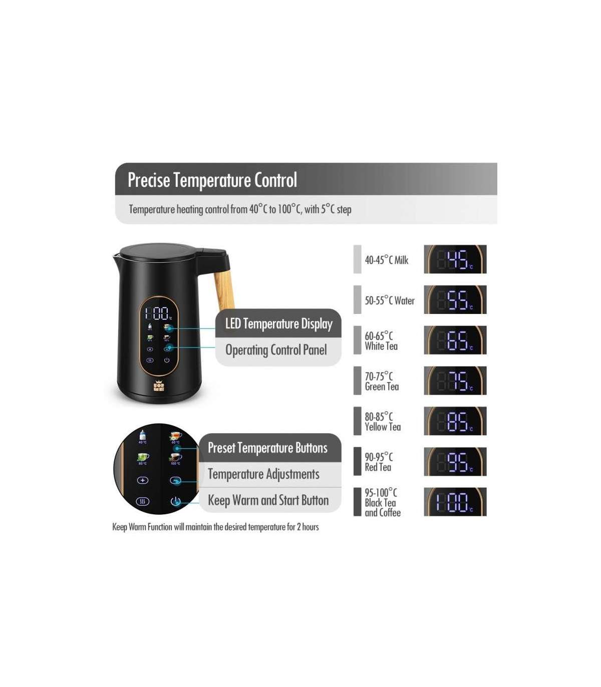 Temperatuuri valik vahemikus 40–100 °C 5 °C sammuga