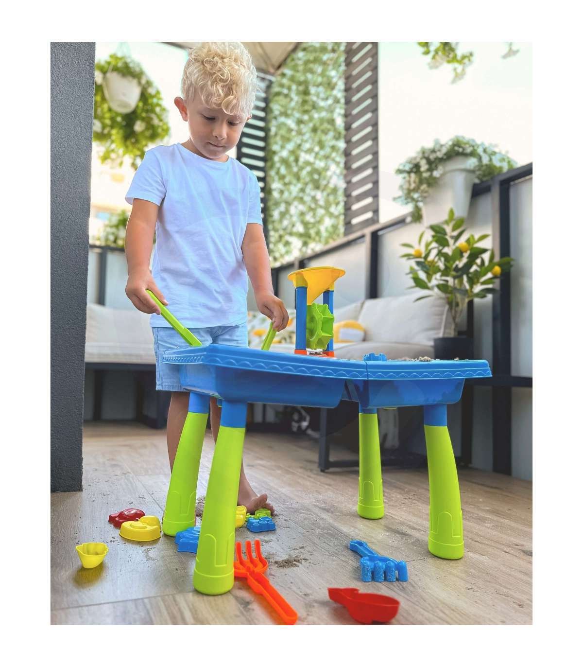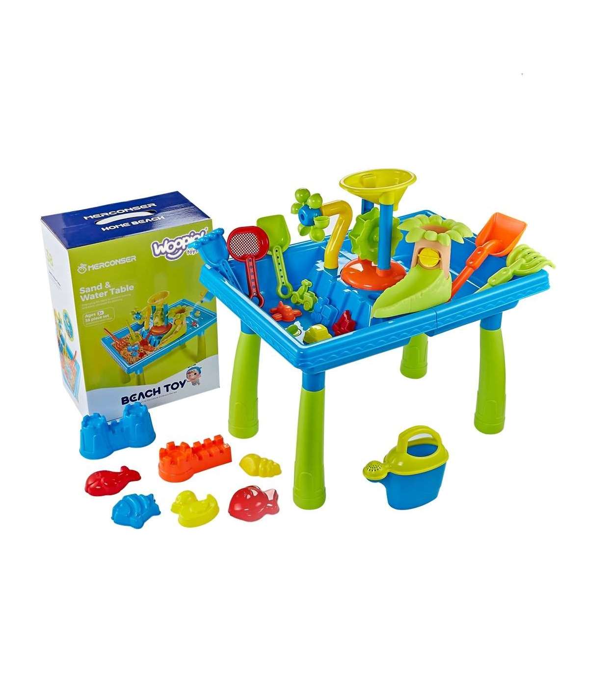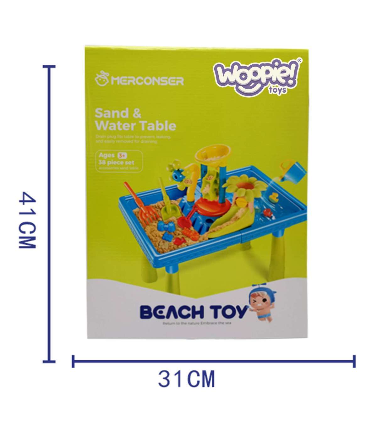 2-ühes veelaud ja liivakast brändilt WOOPIE on ideaalne mängimiseks veega ja liivaga. Komplekt sisaldab 18 tarvikut: vorme, kastekannu, veskikett, labidaid, sõela ja palju muud. Laudel on 2 süvendit; täida üks veega ja teine liivaga. Laps võib valada vett veskile ja vaadata, kuidas vesi paneb osa pöörlema. Sobib ideaalselt mängimiseks kodus, rannal või liivakastis.