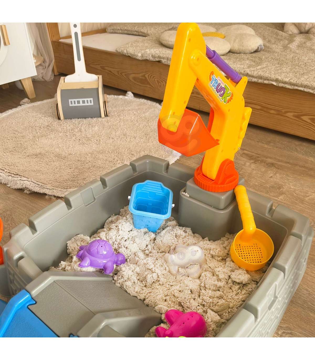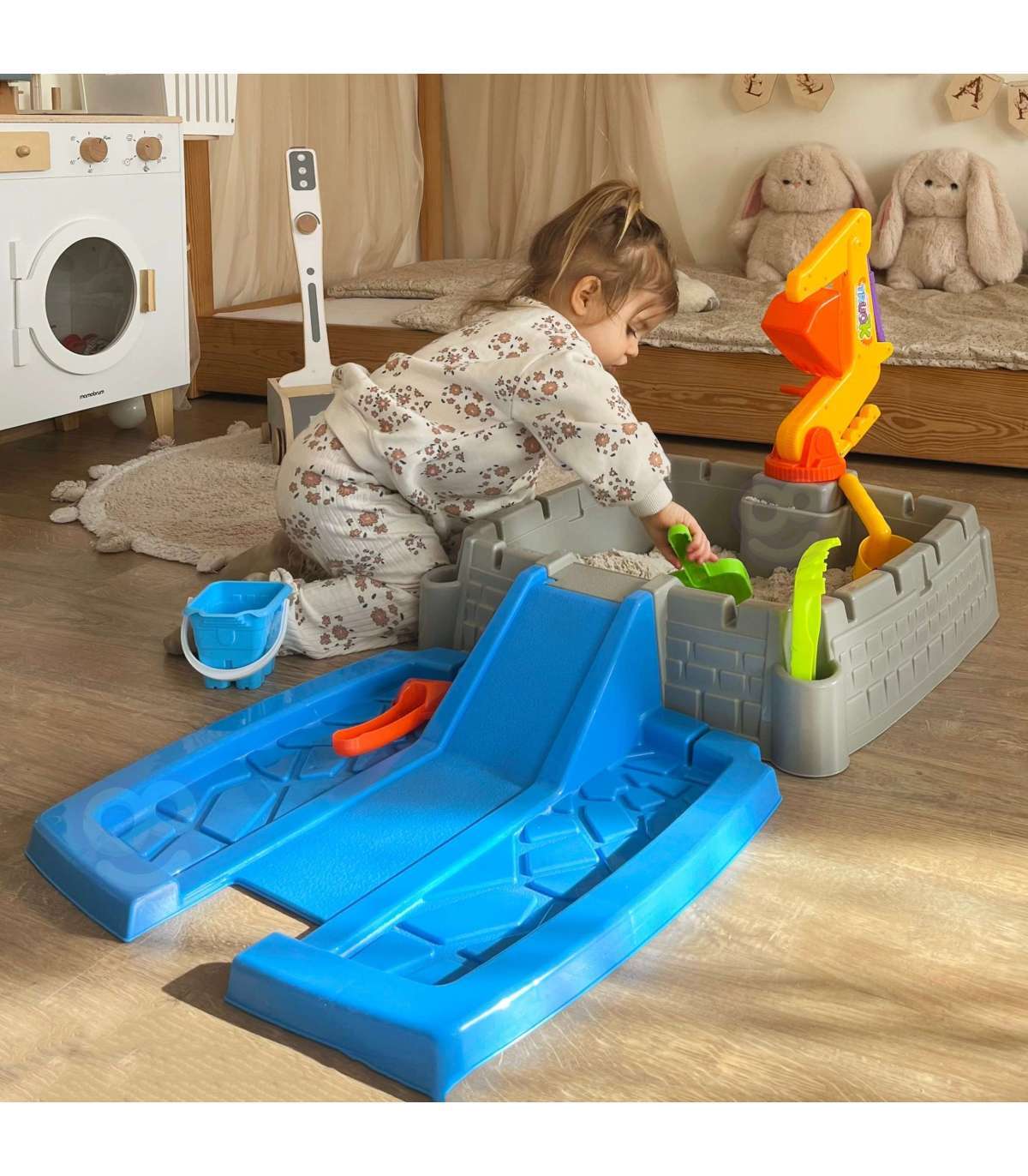 Sinu aed, terrass ja isegi elutuba võivad muutuda maagiliseks kohaks, täis loomingulist mängu ja unustamatuid hetki. Lossikujuline liivakast on ideaalne mängupaik, mis julgustab lapsi looma liivast kuningriike ja kindlusi. Komplekt sisaldab kõiki vajalikke aksessuaare ning liikuv ekskavaatori vars annab mängule uue mõõtme.