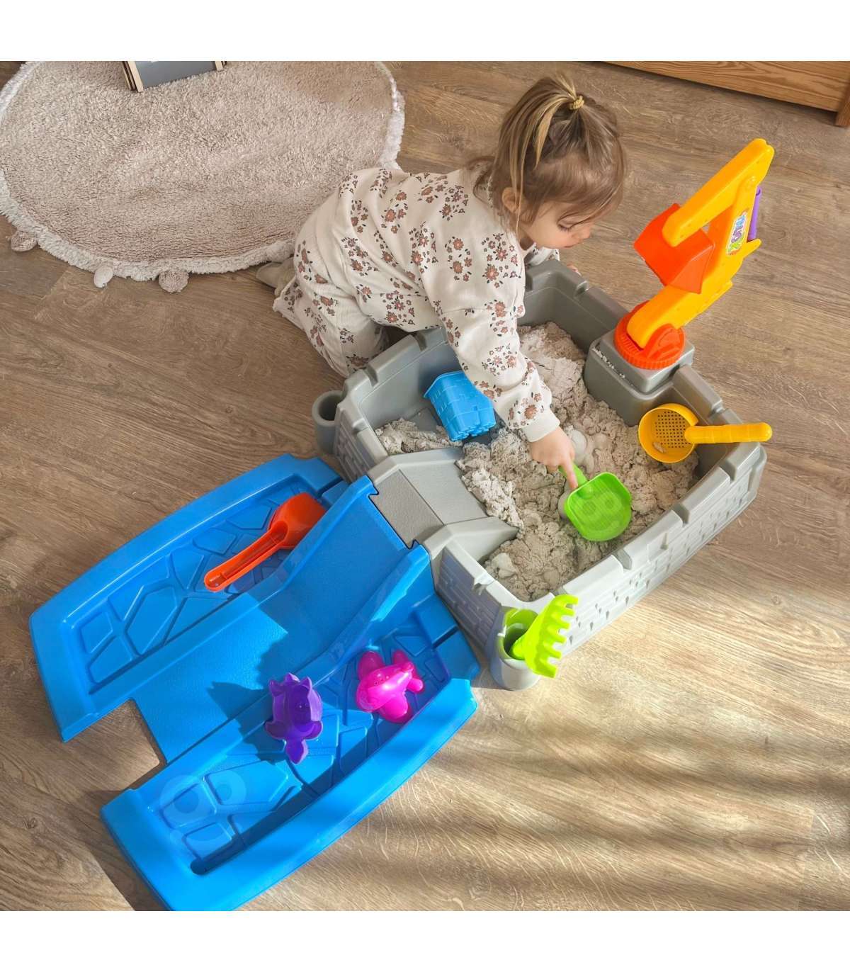 Pärast mängu lõppu võib lossi sissepääsu lihtsalt muuta funktsionaalseks liivakasti kaaneks. Loo lapsele ruum, kus ta saab pühenduda lõputule mängule, arendada oma oskusi ja nautida iga hetke. Lossiliivakasti komplekt on rohkem kui mänguasi — see on vahend kujutlusvõime arendamiseks ja maailma avastamiseks!