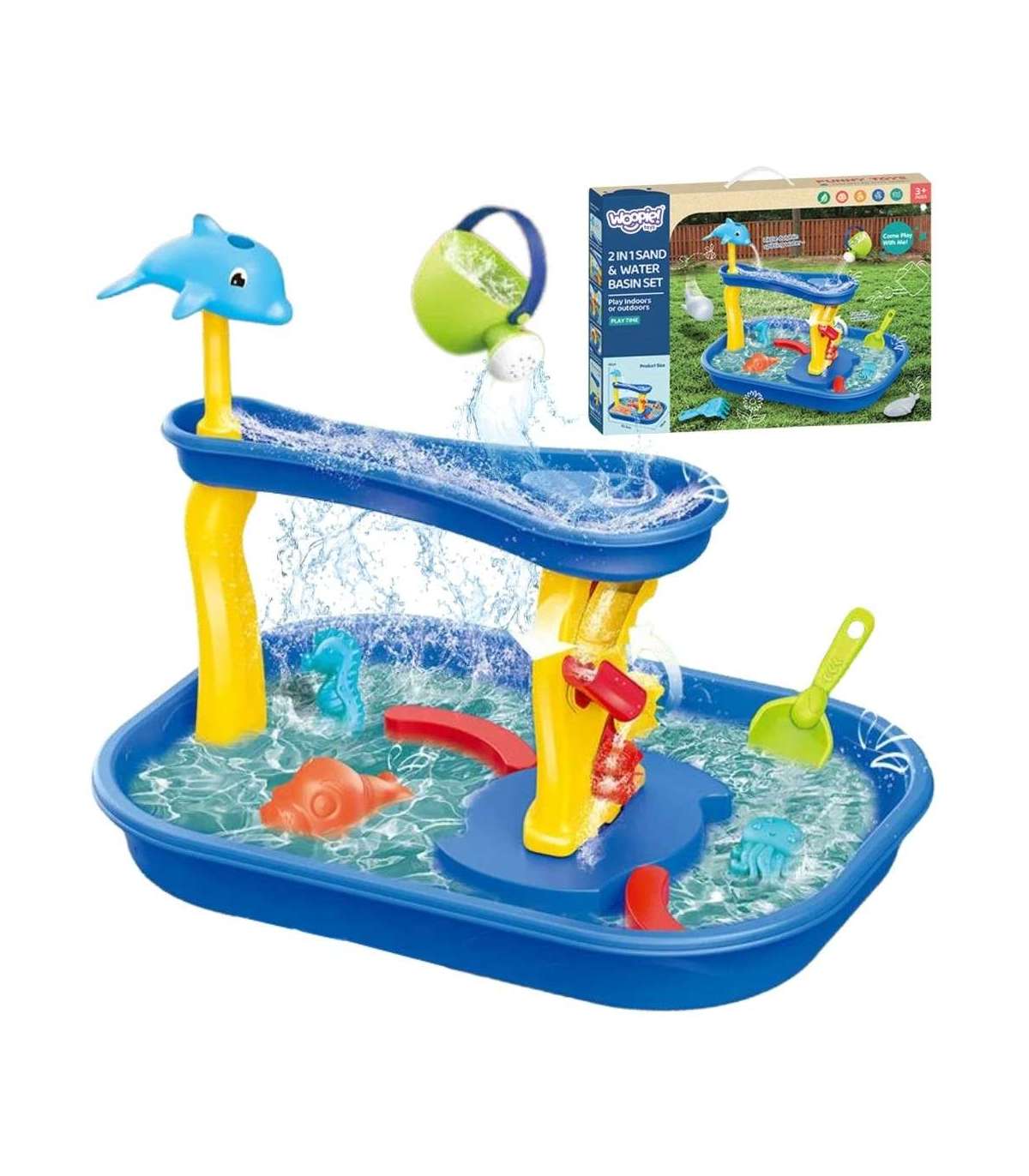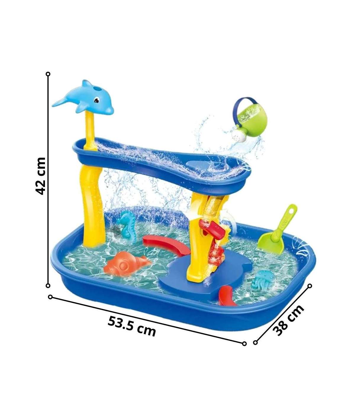 Loo laste jaoks aeda või koju eriline mänguala! Värvikas 2-ühes veemänguasi ühendab kalapüügi, vee valamise ja vee jälgimise lõbu läbi naljakate konstruktsioonide nagu veeratas ja delfiiniga liutor. Komplekt pakub lastele tunde harivat mängu täis liikumist ja naeru!